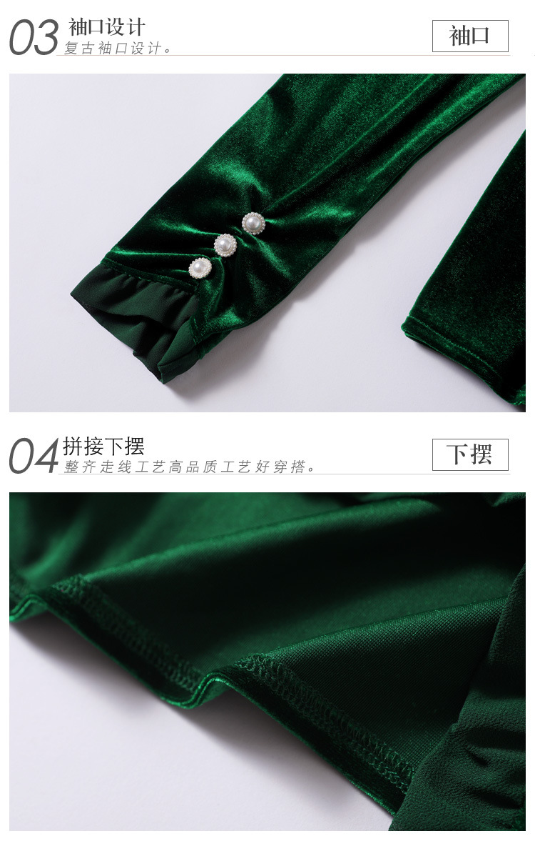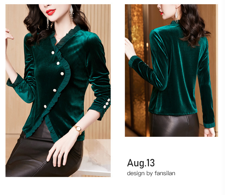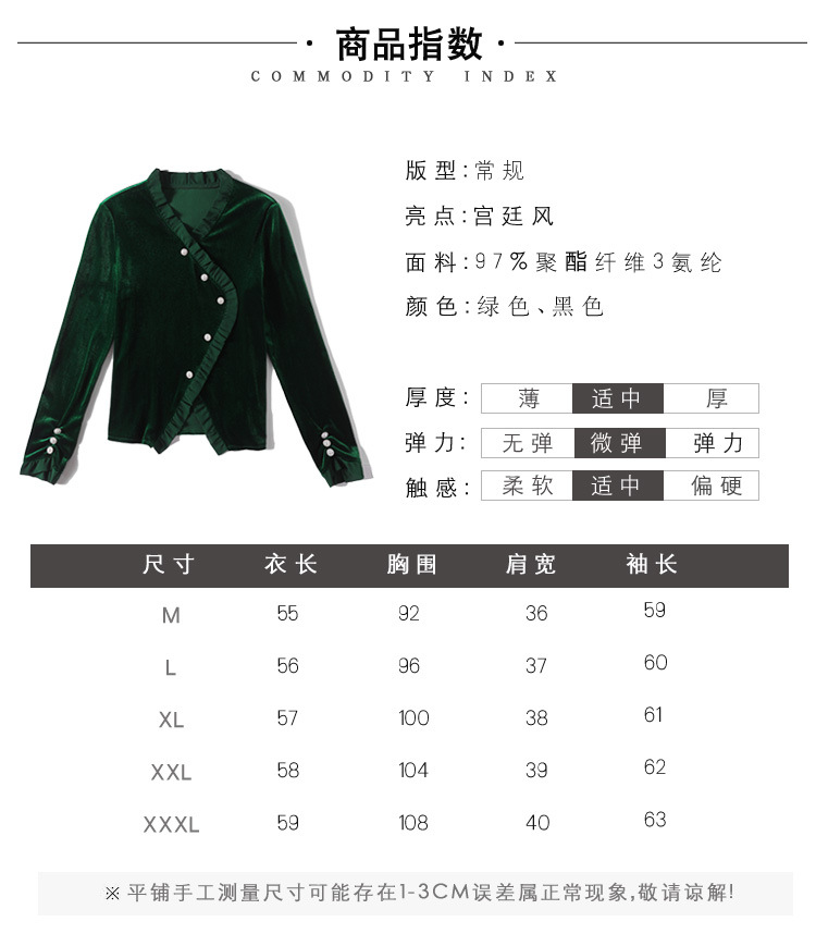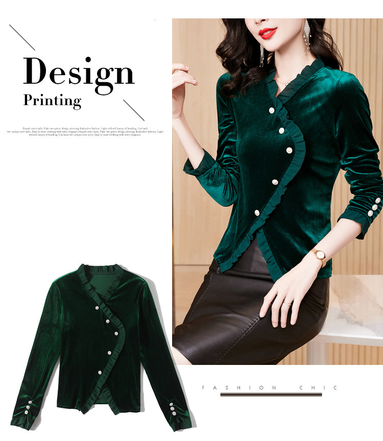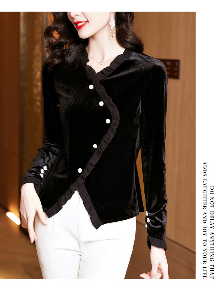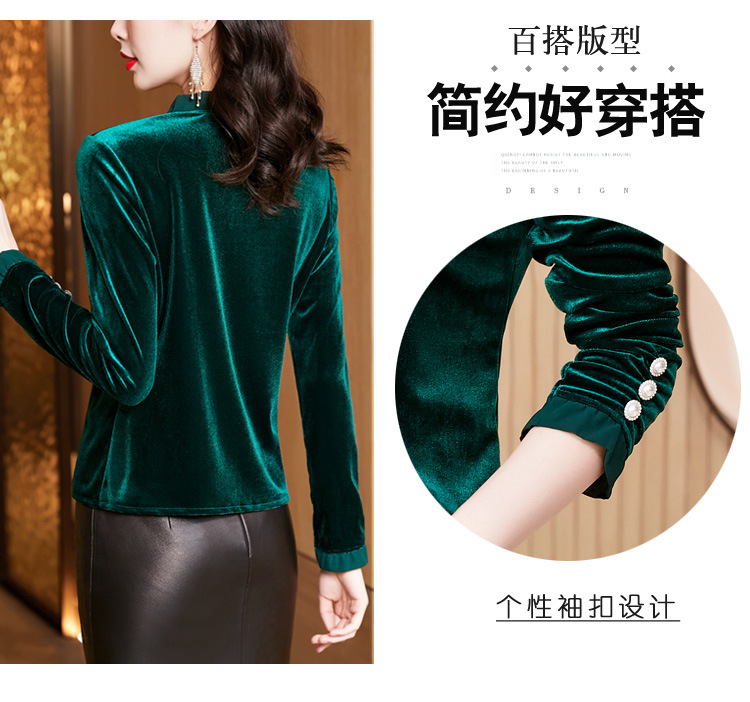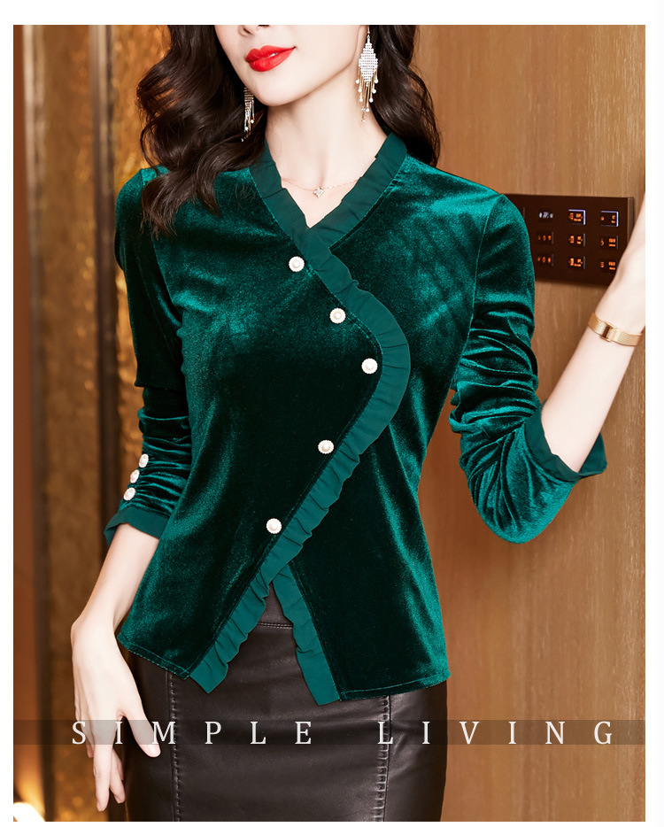 气质百搭,丝绒洋气V领纽扣长袖T恤修身显瘦打底上衣KQL-M2368