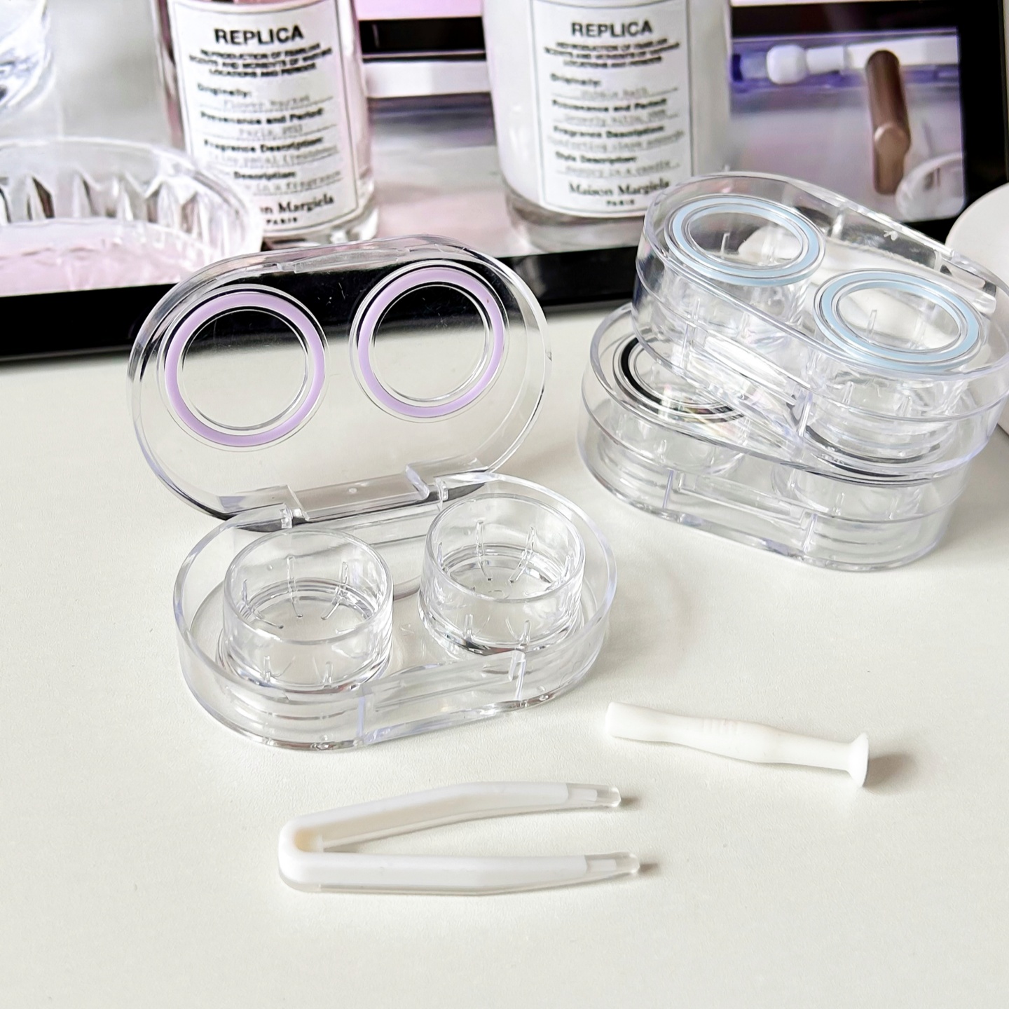 伴侣盒套装组成:双联盒、镊子 ,配戴棒。