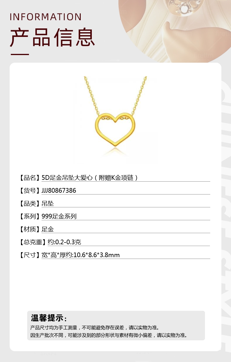 【品名】5D足金吊坠大爱心(附赠K金项链)