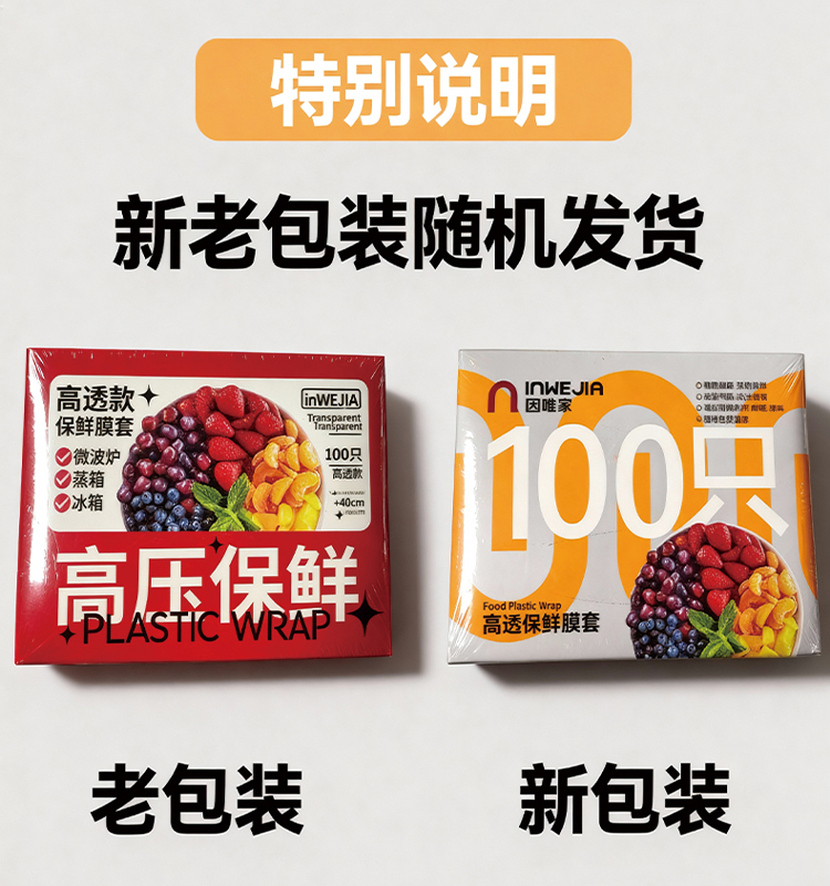 inwejia 一次性保鲜膜套100只/盒 食品级家用保鲜袋 无惧冷热 适配多种餐具