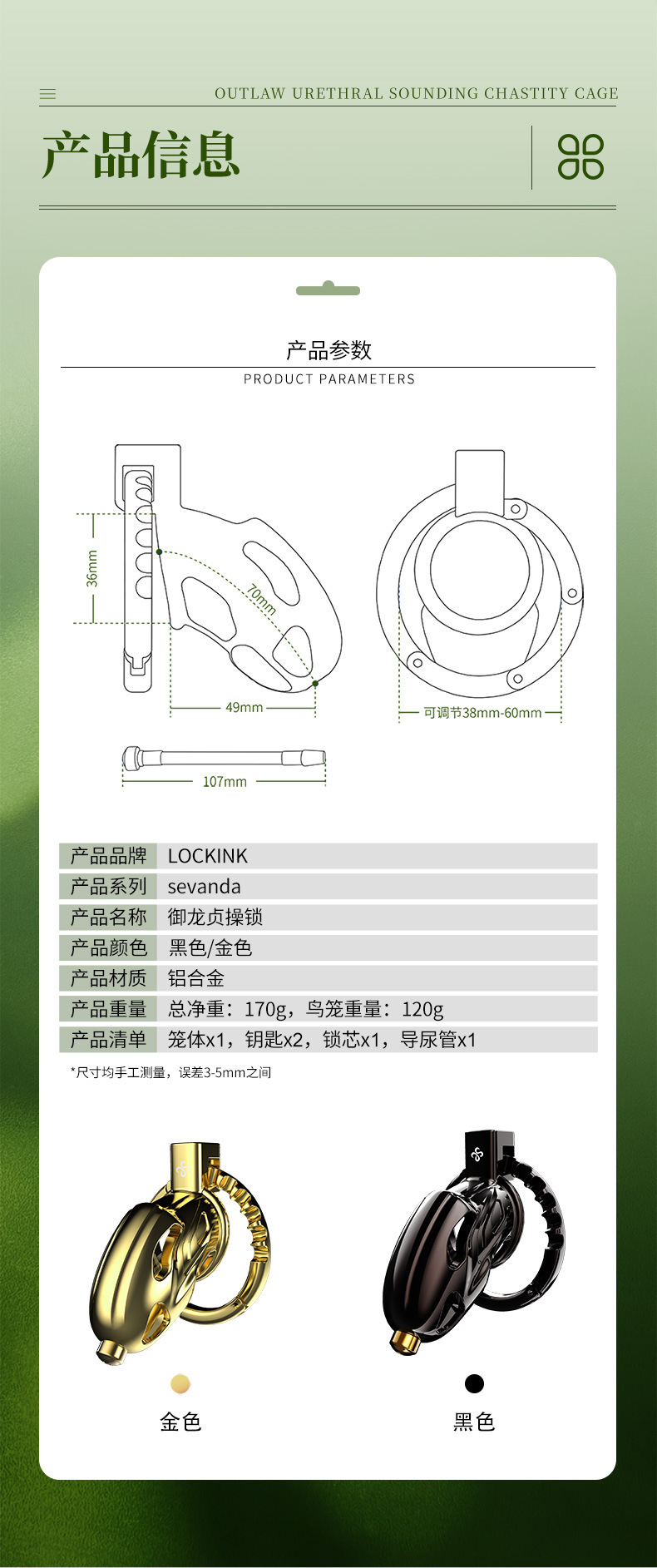 LOCKINK索迹御龙贞操锁男用CB锁阴茎锁成人情趣