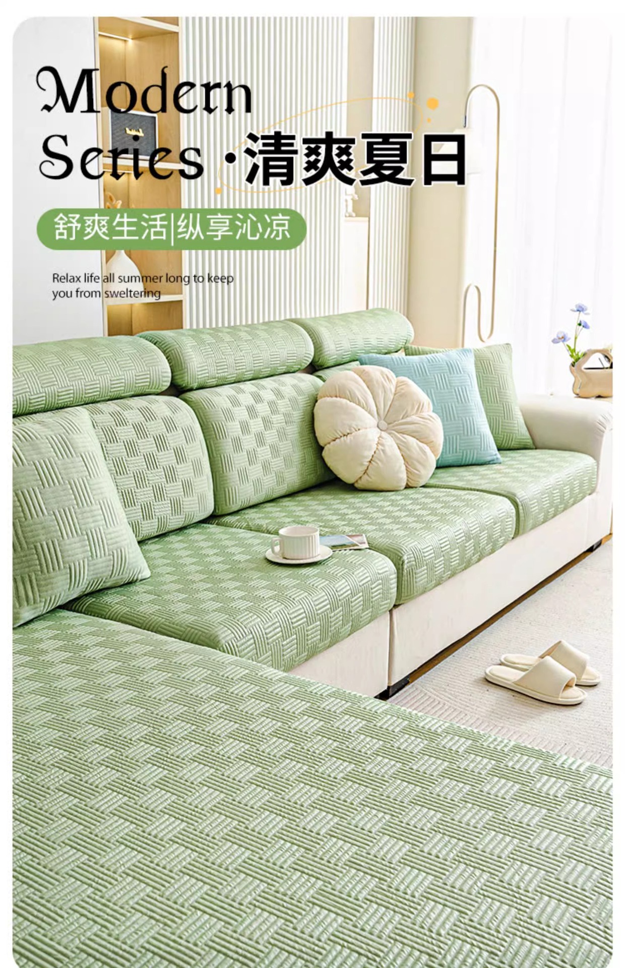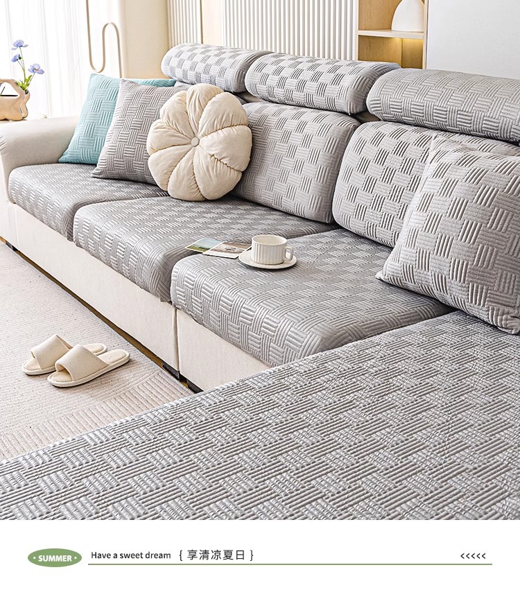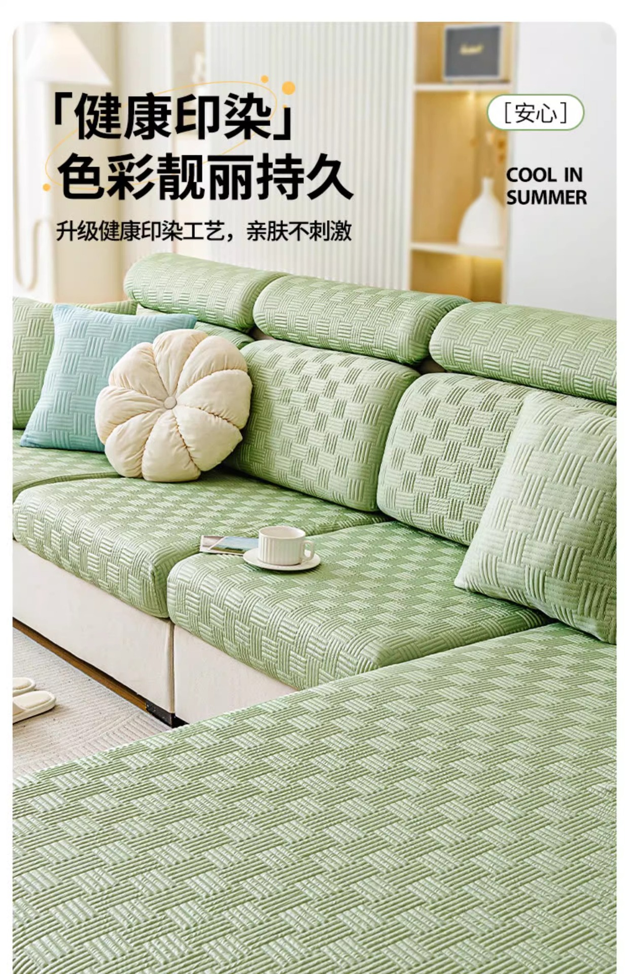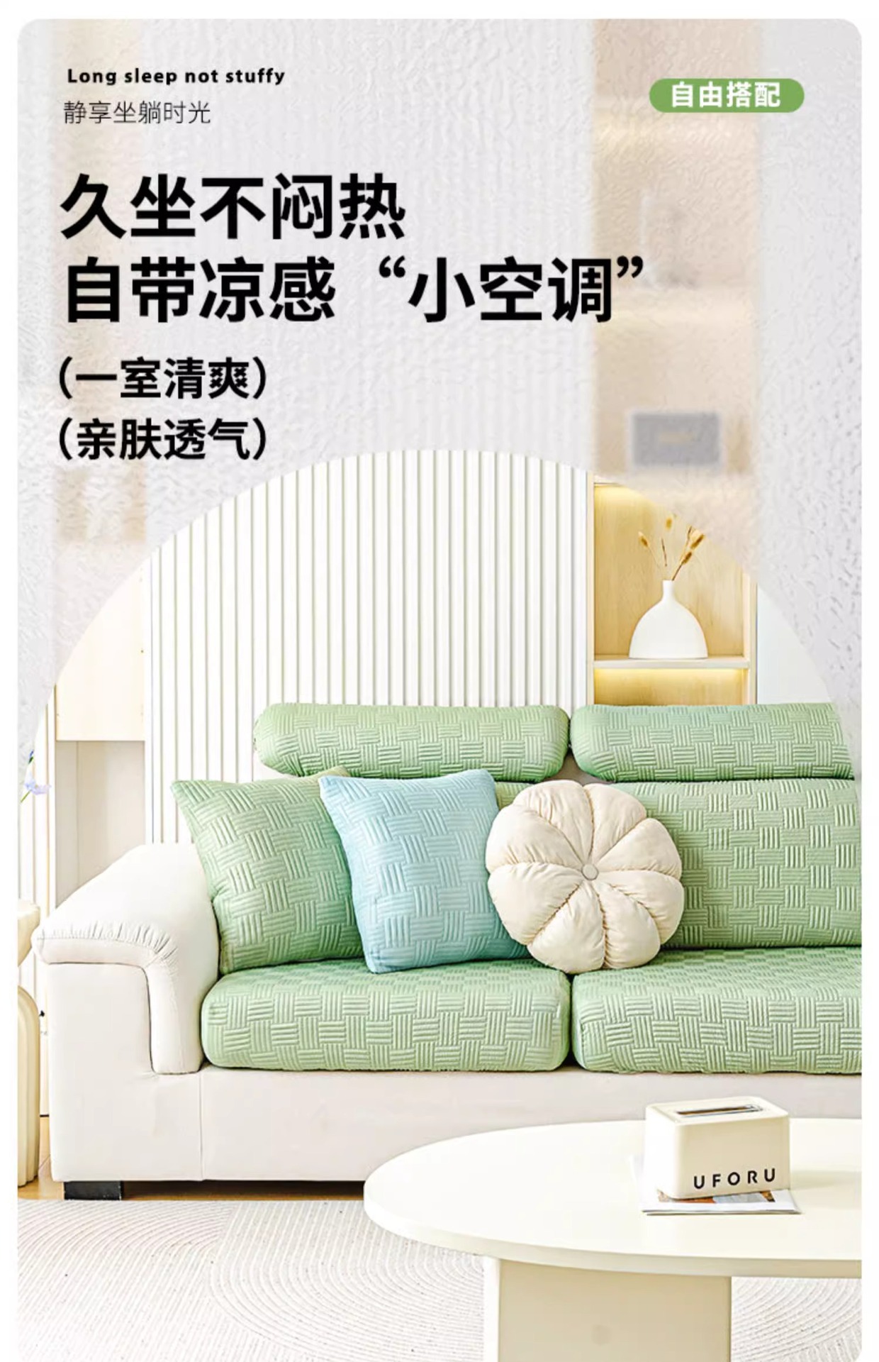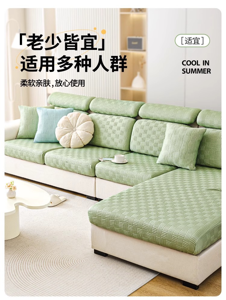 【久坐不闷热!自带凉感“小空调”】夏季凉感冰丝沙发套罩全包万能套防滑凉席坐垫子新款夏天盖布,全包设计牢牢套佳,贴心保护沙发。ry