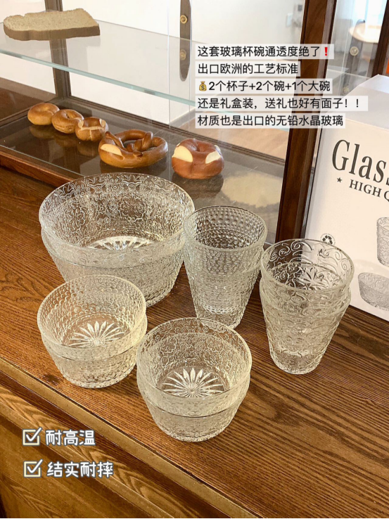 说在前面⚠️ 这批货是从国外专柜撤下来的爆款玻璃器 剪标是因为品牌公司为了保护版权 将不在专店销售的一些产品标示破坏并去掉原包装的手段 一刀剪下去,单价三位数的玻璃杯碗就变成白菜了! 这套玻璃杯碗通透度绝了❗ 出口欧洲的工艺标准 59.9💰2个杯子+2个碗+1个大碗 !!还是礼盒装,送礼也好有面子!! 材质也是出口的无铅水晶玻璃 随便装点什么进去,整一个闪闪发光✨✨ 不妨在春日中增添一点暖意💖