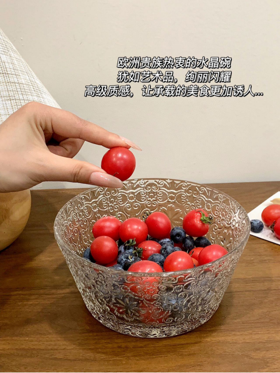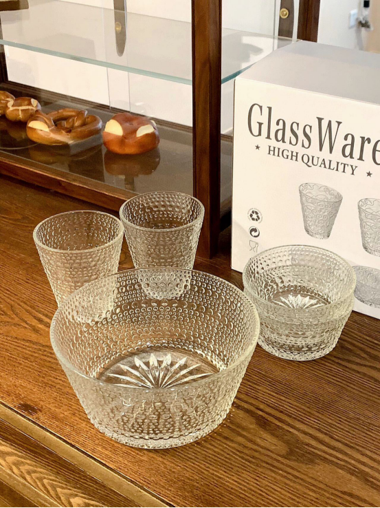 ❌以前一直爱买很薄的玻璃器皿 使用未免太过小心翼翼 ❌大工业流水线做的厚玻璃杯 喝东西更觉得没有灵气 ✅适合夏天的露珠玻璃杯 不是市场上的通货❗️ 杯碗上面的露珠是非常独特的存在❗️ 在玻璃还没有淬火成晶的时候 设计师利用了离心力,甩出玻璃气泡 灵感来自于晨曦中悬挂于草尖上的露珠 光线在露珠中折射,展现玻璃器别致的反光之美 ✨有着不过分的分量感 凉白开也喝出清冽的气质