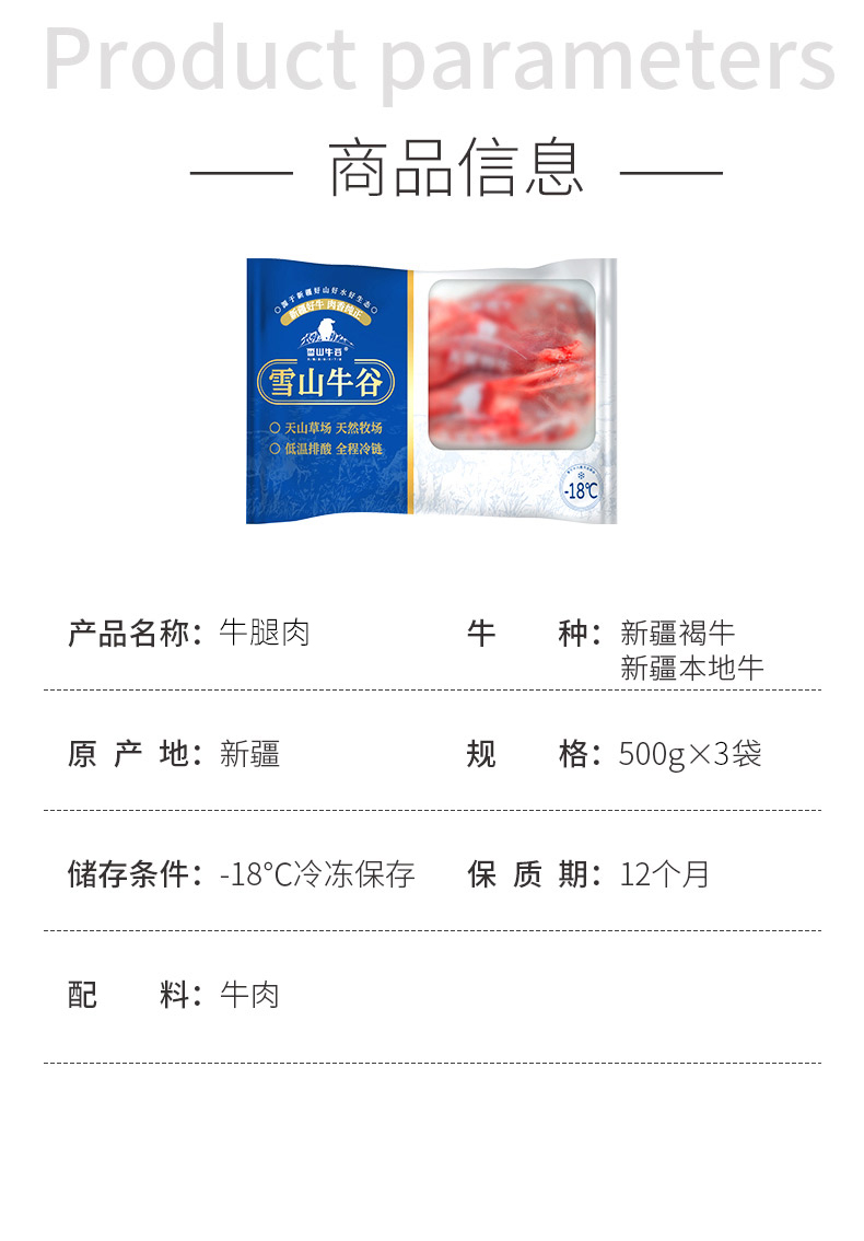 【雪山牛谷】新疆精选牛腿肉500g*3袋