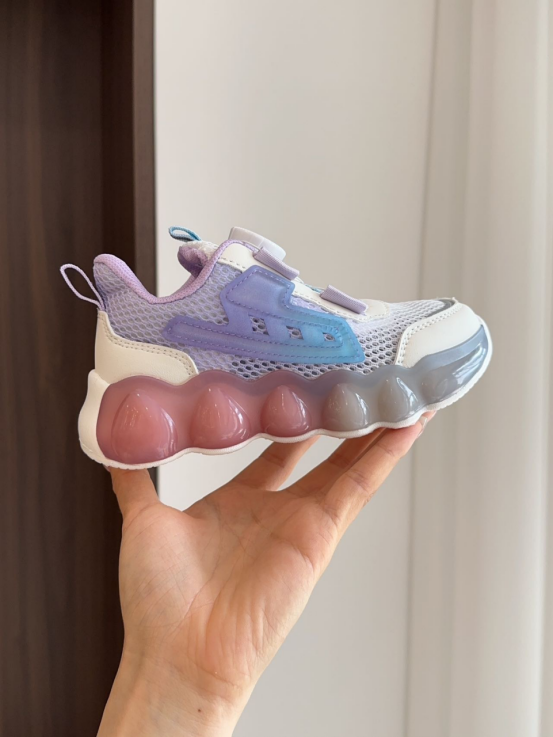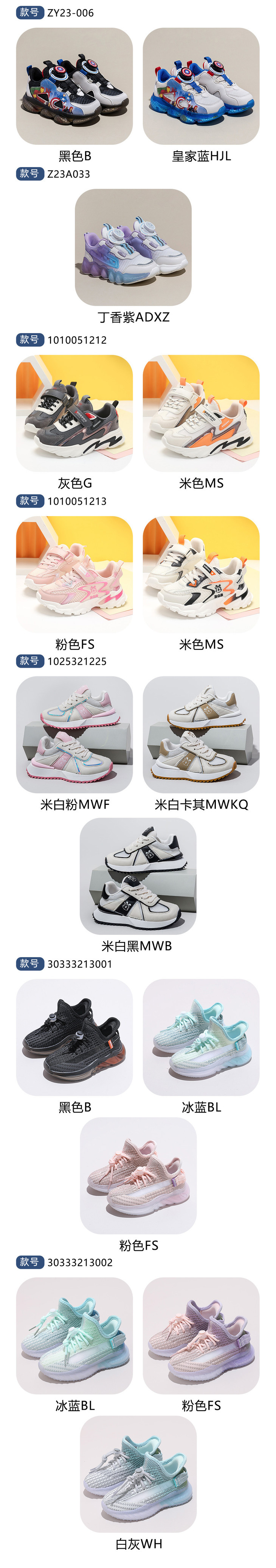 货号:30333213002 颜色:粉色FS、冰蓝BL、白灰WH 尺码:27-37 材质:鞋面 飞织;鞋底 PVC 三款颜色都是比较明亮的色彩,超级清爽活力,春天穿超级合适超级好看 鞋底是那种又轻又软的PVC材质,穿着回弹性超级好,不会累脚 鞋底还搭配有防滑纹,穿着外出玩耍跑跳更安全,适应多种路面,走路更稳