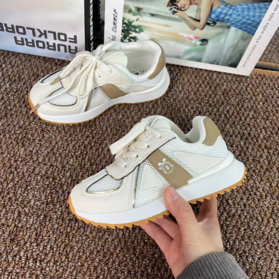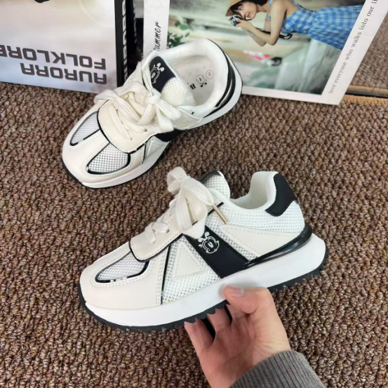 货号:1025321225 颜色:米白/粉、米白/黑、米白/卡其 尺码:26-37 材质:合成革/网;橡胶 款式简约时尚,颜色明亮活泼,宝宝穿着很好看很有活力,满满运动风 特别百搭,校服、休闲服都很合适,宝宝平常还可以穿着上学参加体育课 鞋面采用网布材质,大网孔超级透气,宝宝穿着舒爽不捂脚 PVC柔软大底搭配防滑纹,防滑纹增加鞋子与地板的摩擦力,让宝宝出门玩耍跑跳也更加安全 鞋垫超级柔软舒适,宝宝穿着踩脚感超级好,缓解宝宝走路疲劳 宽大加固圆鞋头,防撞耐踢保护宝宝娇嫩的脚趾