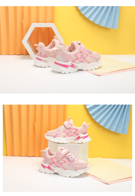 货号:1010051213 颜色:粉色、米色 尺码:26-37 材质:鞋面 合成革+网;鞋底 EVA 款式设计潮流百搭,颜色搭配活力时尚~~ 不管是男宝宝还是女宝宝都很合适~~ 整体风格偏可爱日常风,平常外出上学穿着都很不错 后跟杯加固设计,稳健宝宝娇嫩根骨,防止宝宝脚丫出现足外翻等~~ 便捷魔术贴设计,好看又好穿脱,不用为系鞋带而烦恼!!
