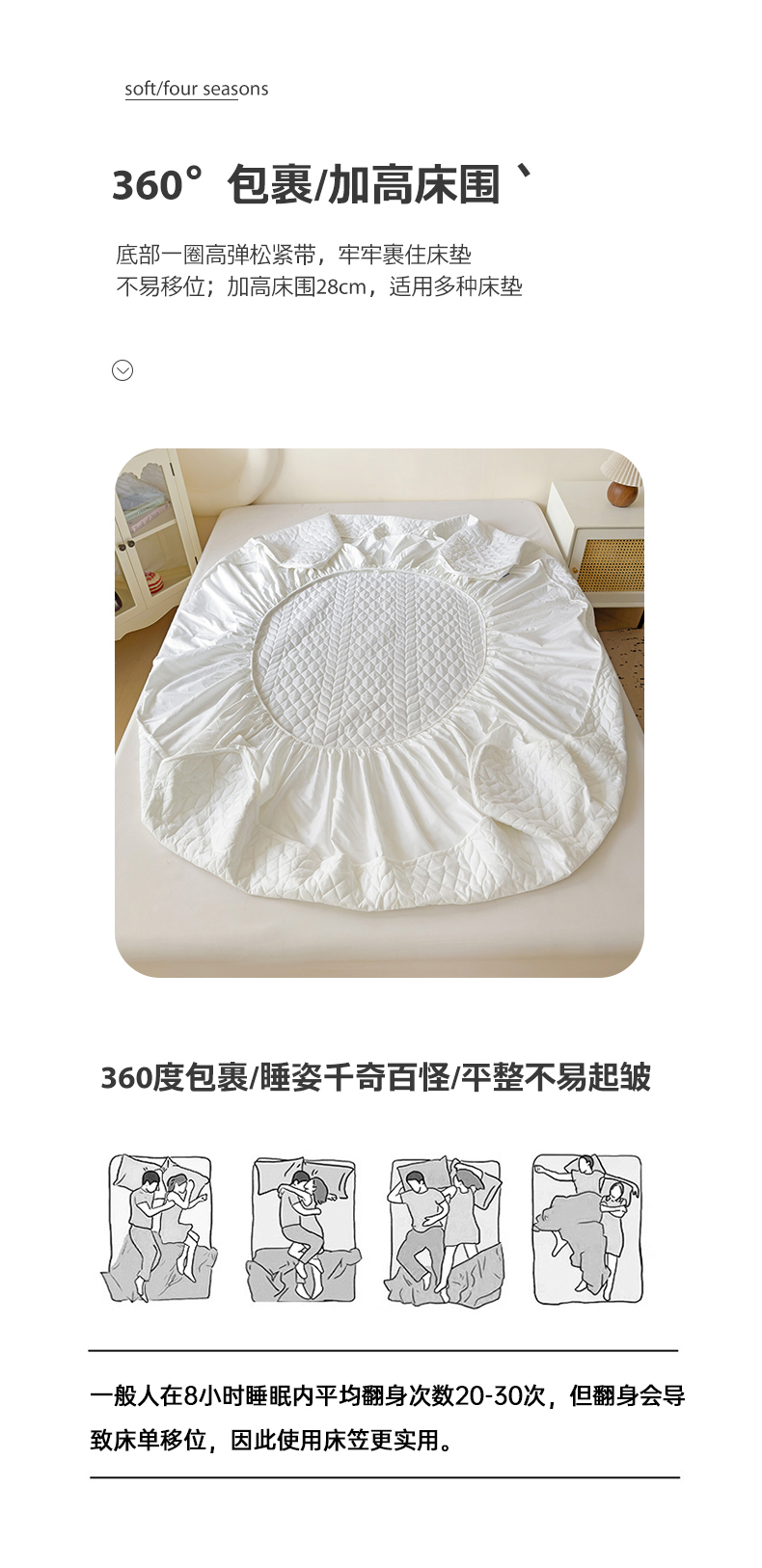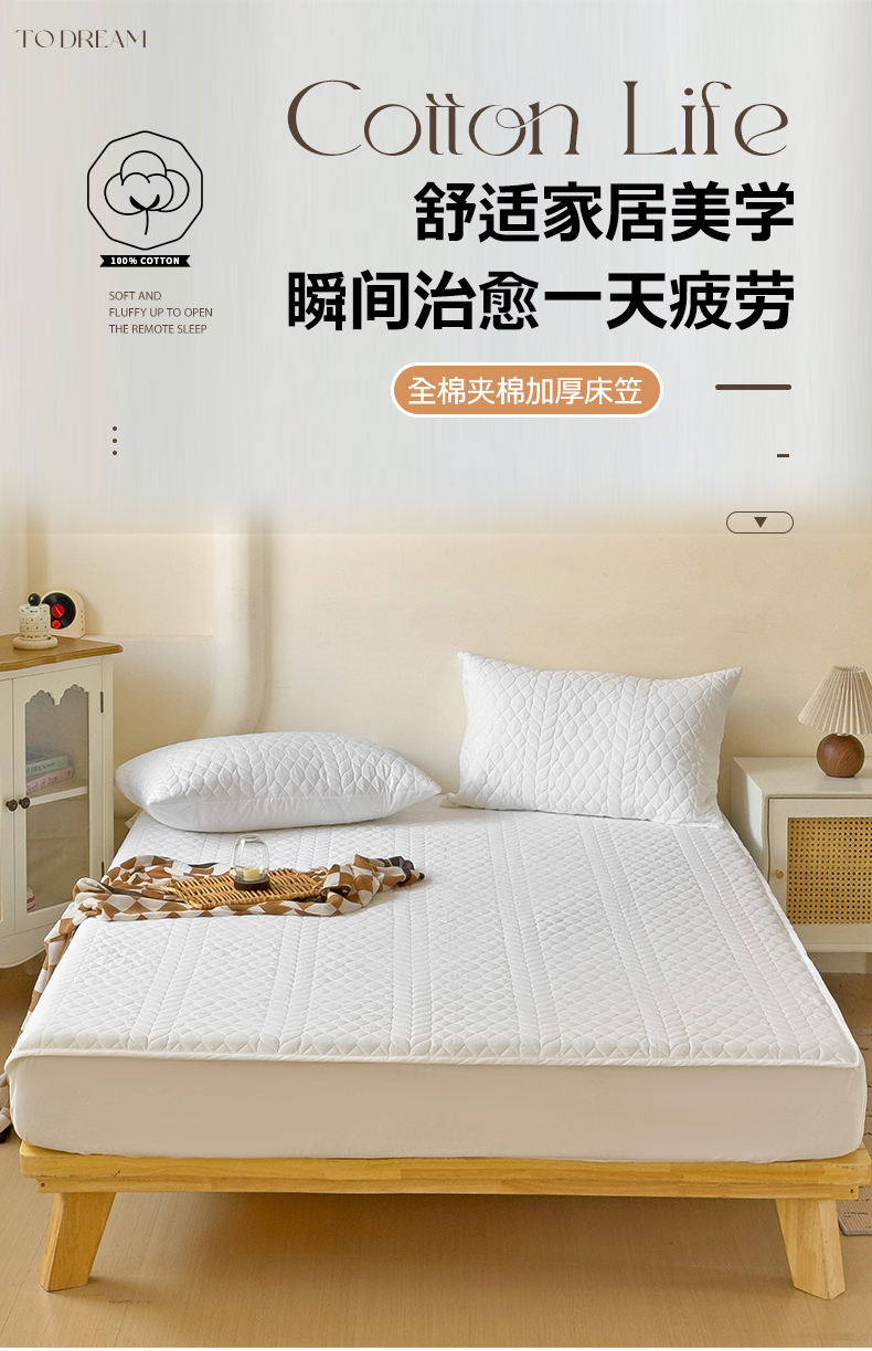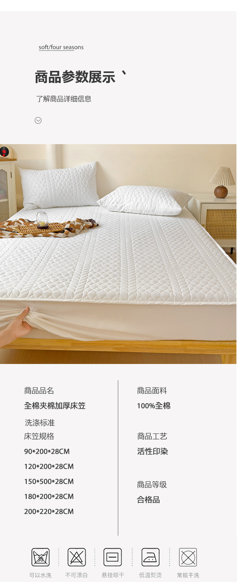 【四季可用】全棉三层夹棉床笠 床垫保护套可机洗水洗