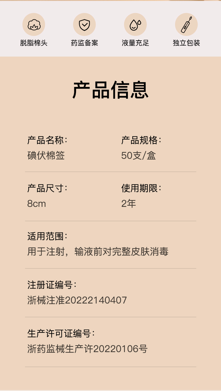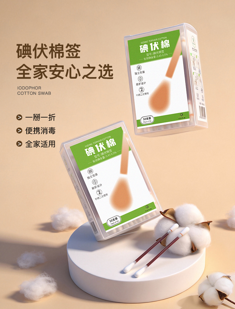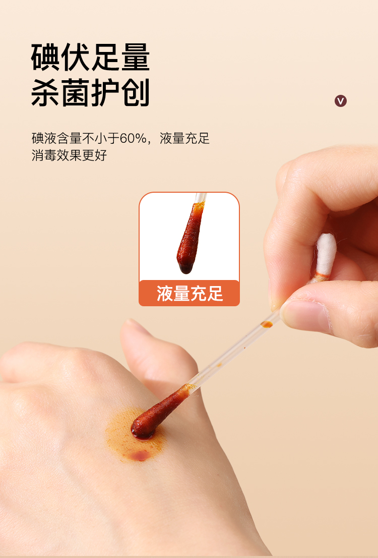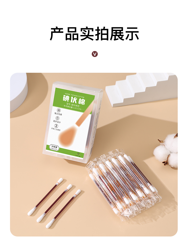医用碘伏棉签一次性碘伏棉棒酒精伤口消毒新生婴儿脱脂棉花棒
