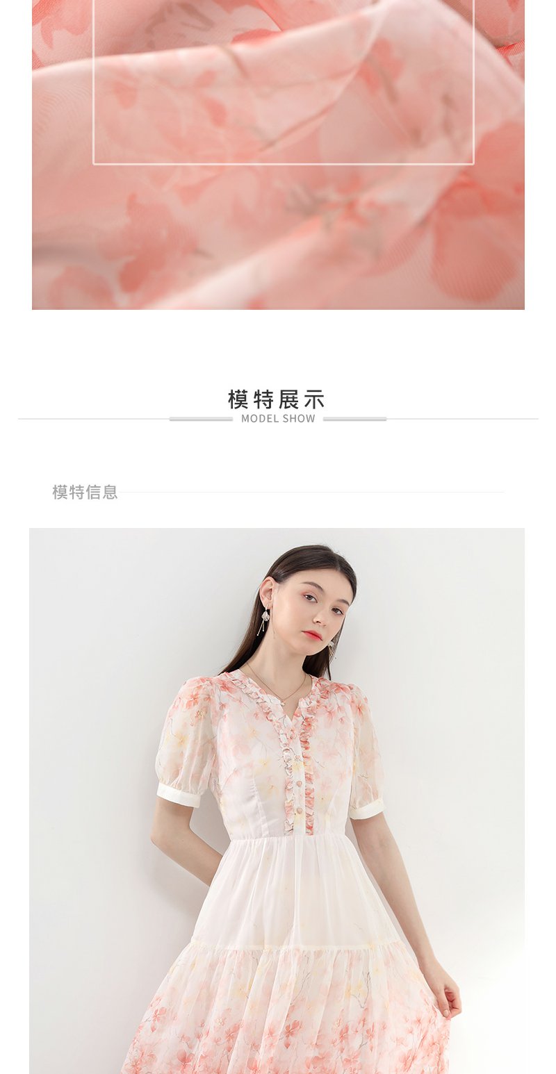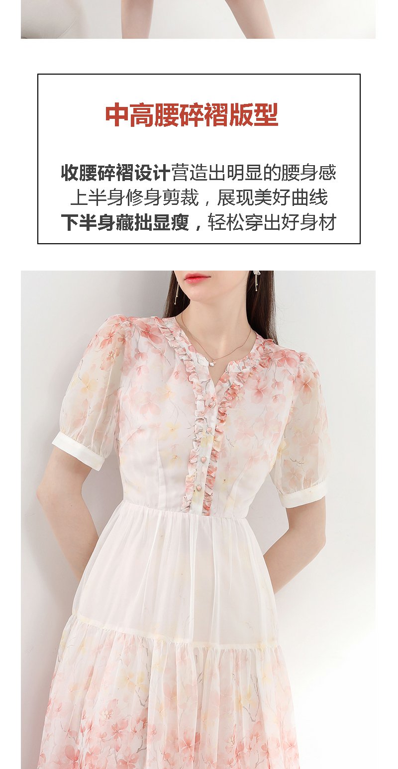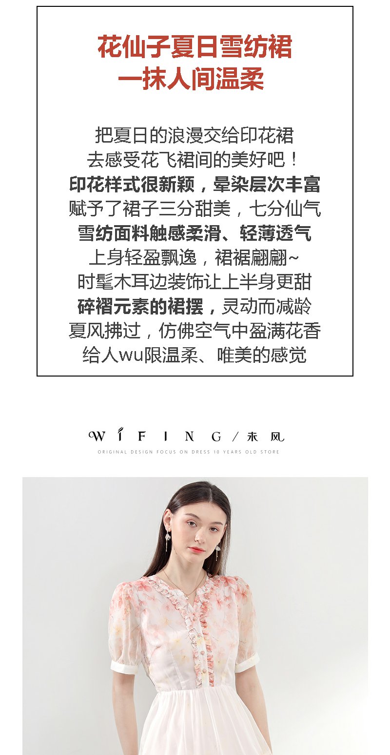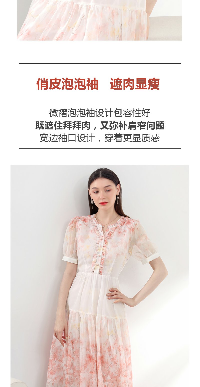 未风红色雪纺碎花连衣裙女夏2025夏季新款气质法式泡泡袖显瘦裙子