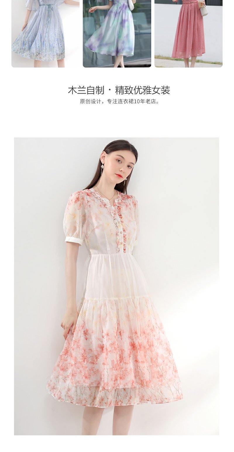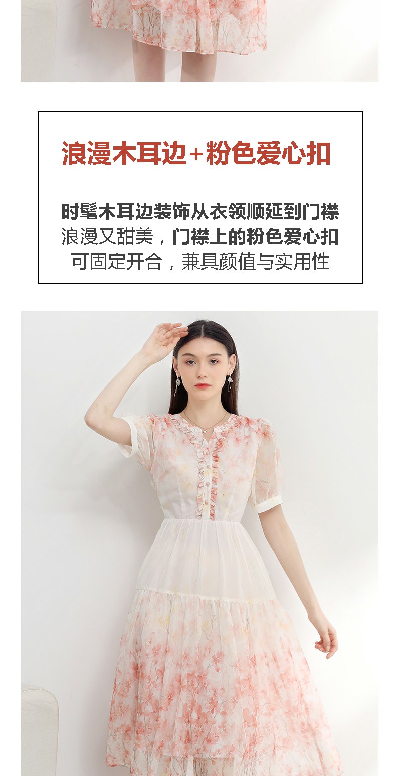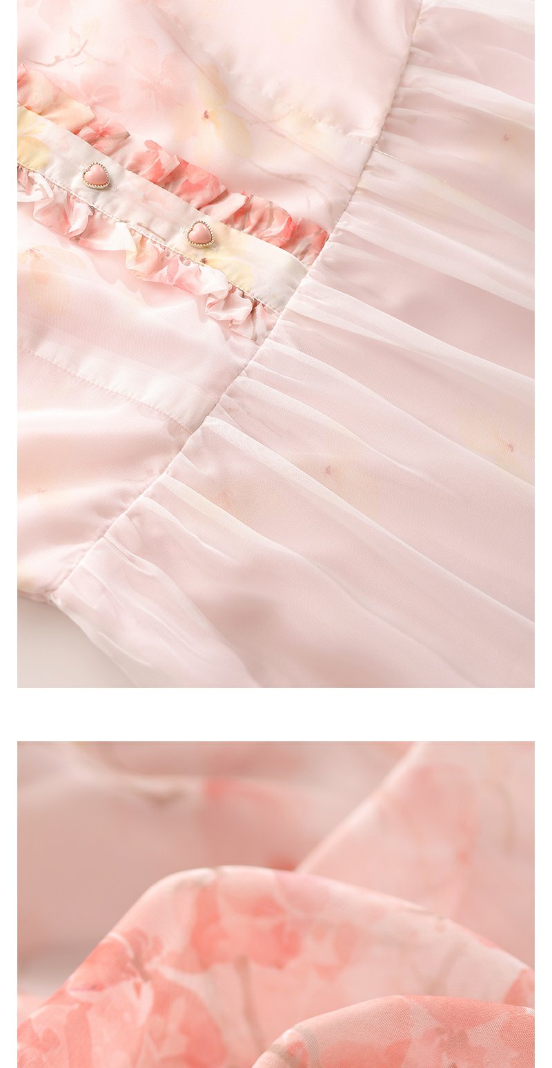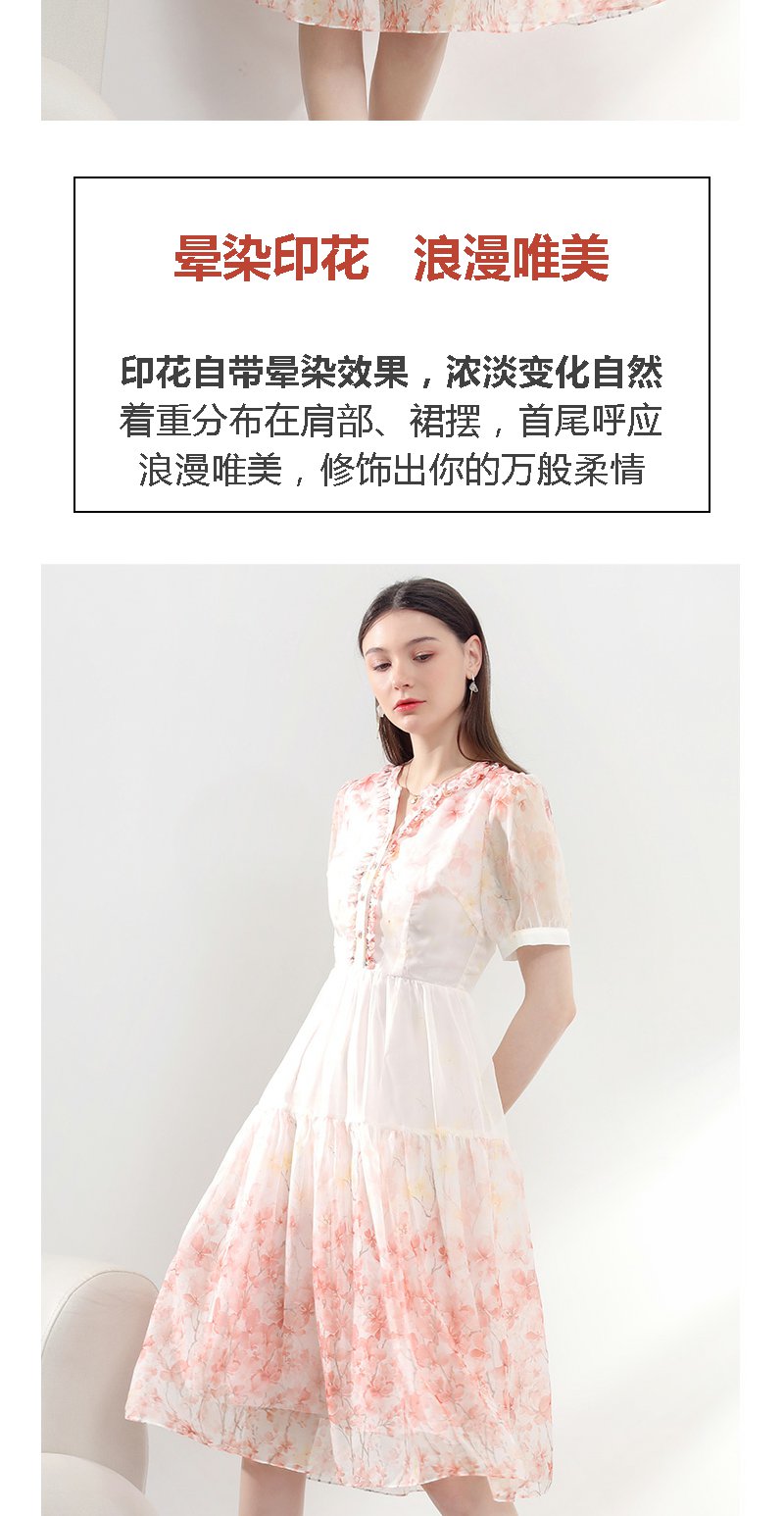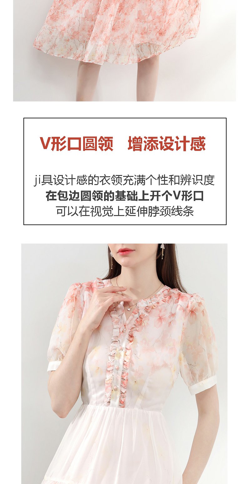 未风红色雪纺碎花连衣裙女夏2025夏季新款气质法式泡泡袖显瘦裙子