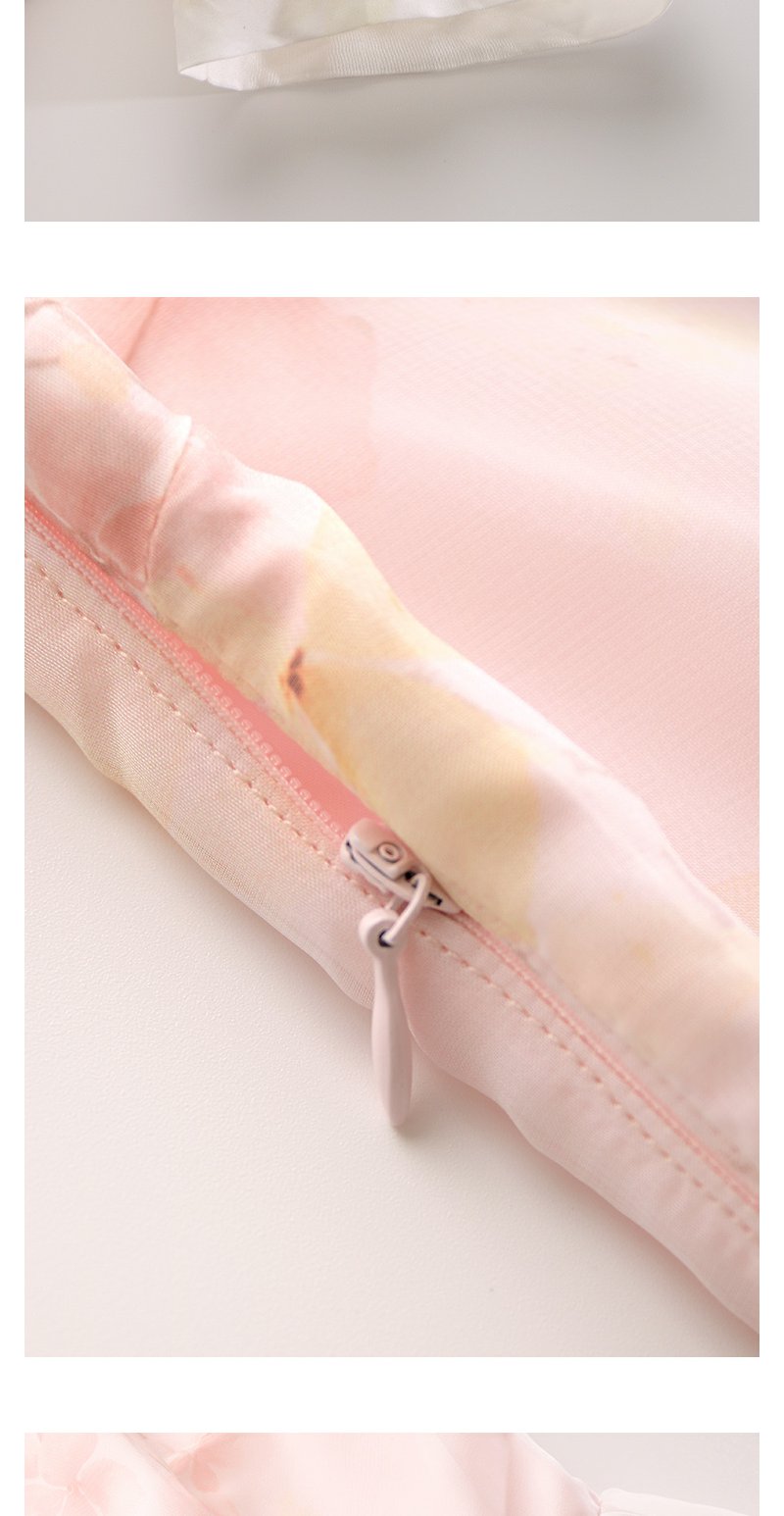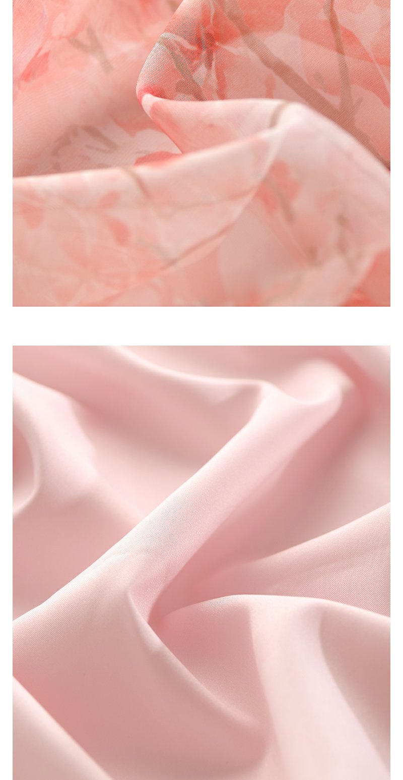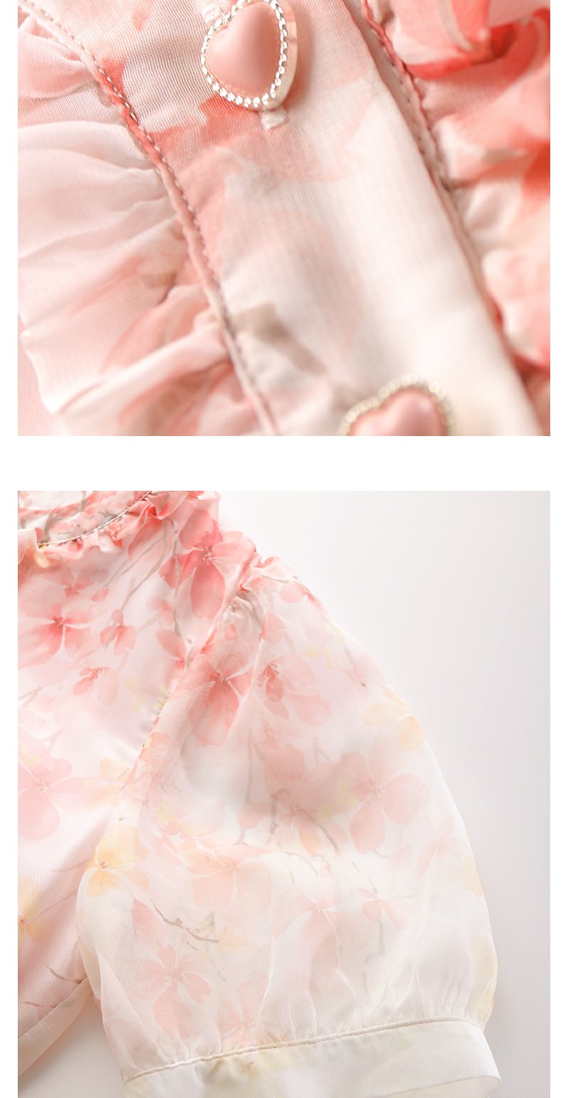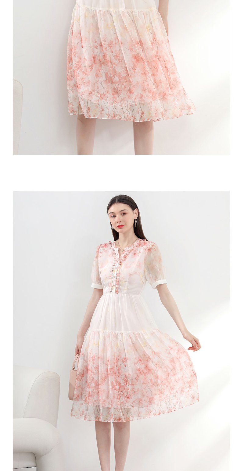 未风红色雪纺碎花连衣裙女夏2025夏季新款气质法式泡泡袖显瘦裙子