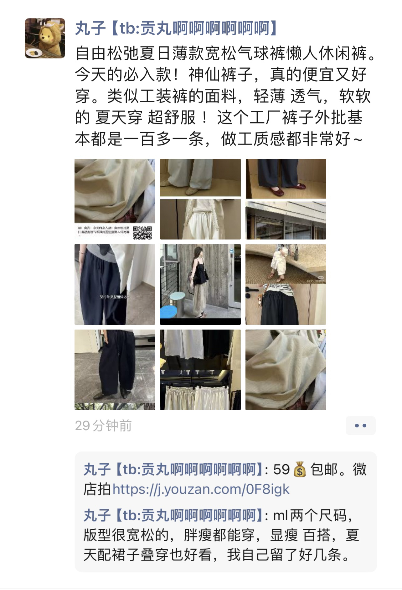 L 裤长98 腰围松紧68-110左右 臀围124 大腿围77
