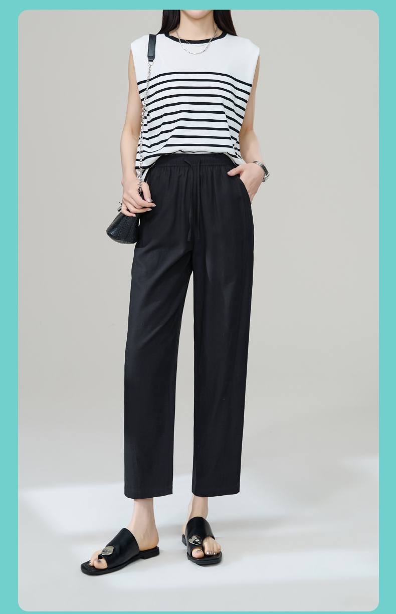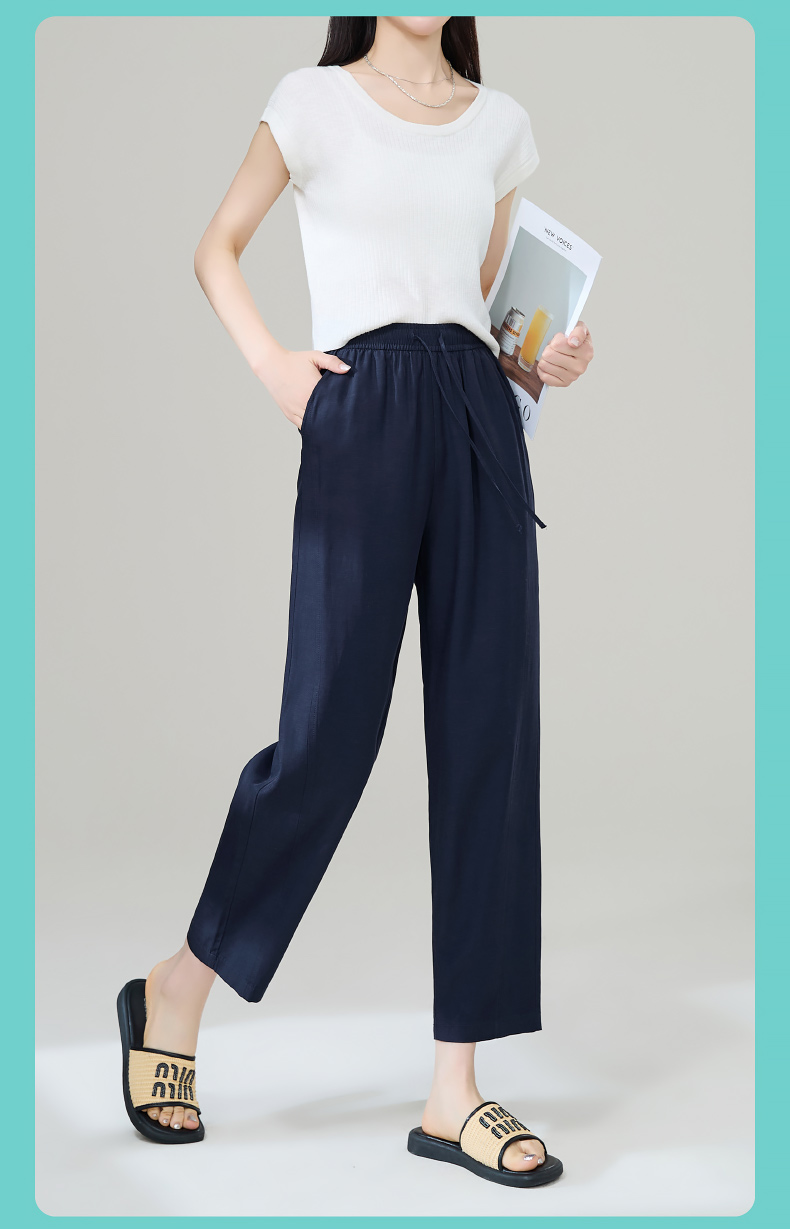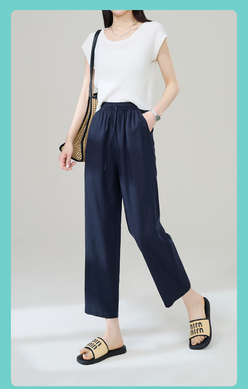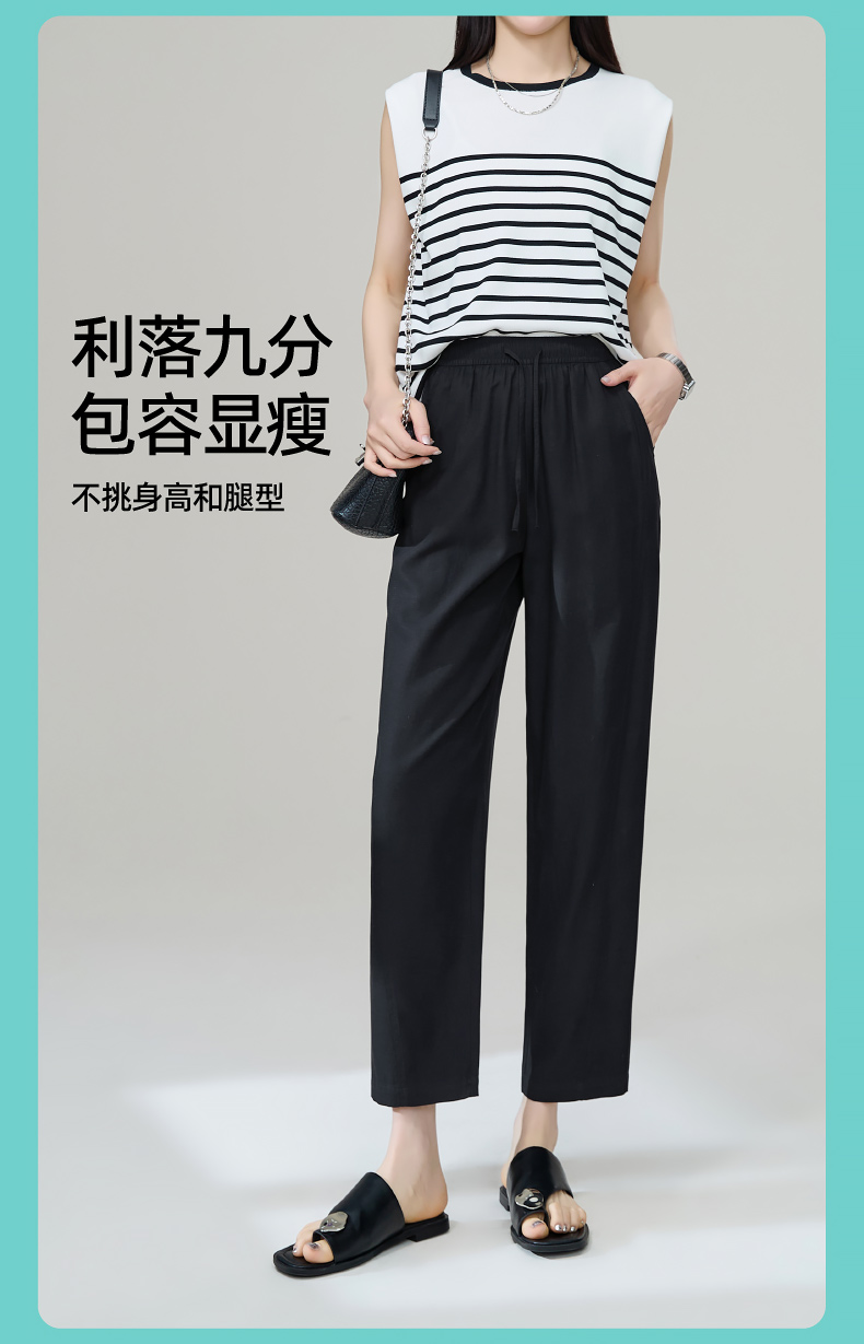 【九分莱赛尔麻哈伦裤】逸阳夏新款高腰宽松休闲通勤萝卜裤1201