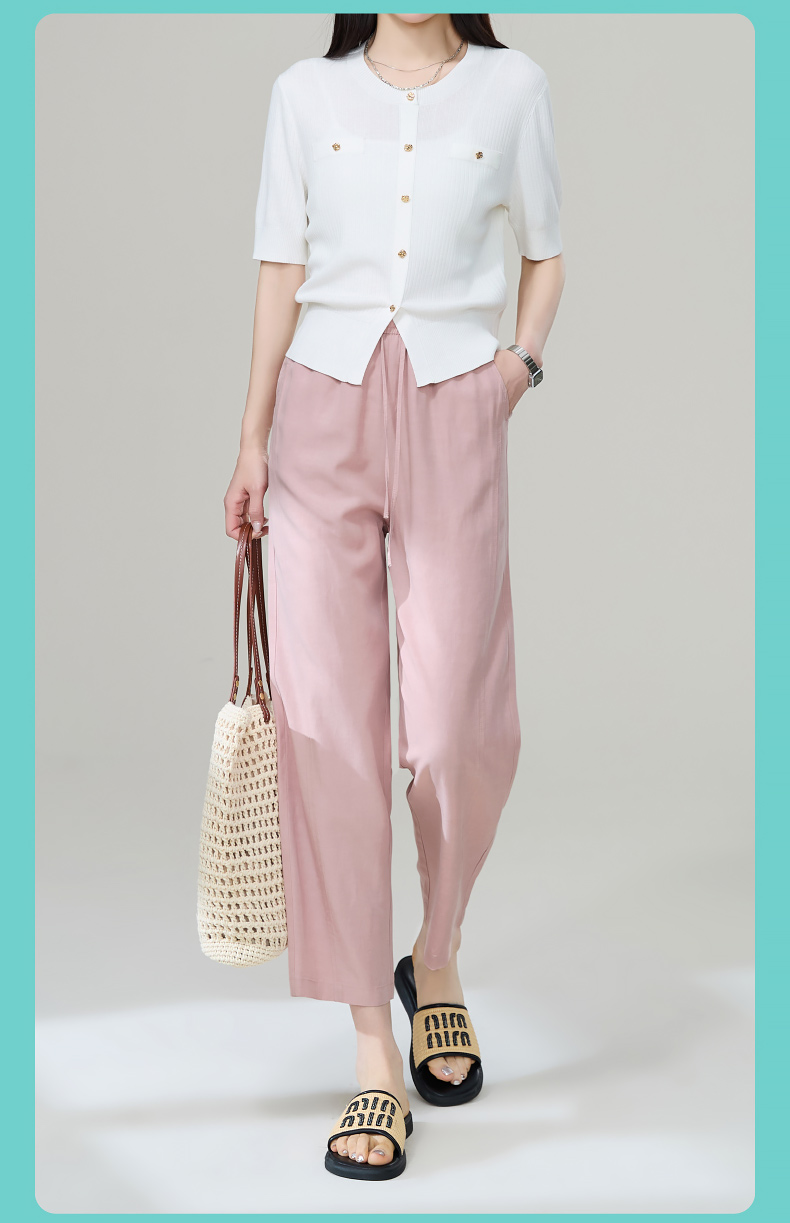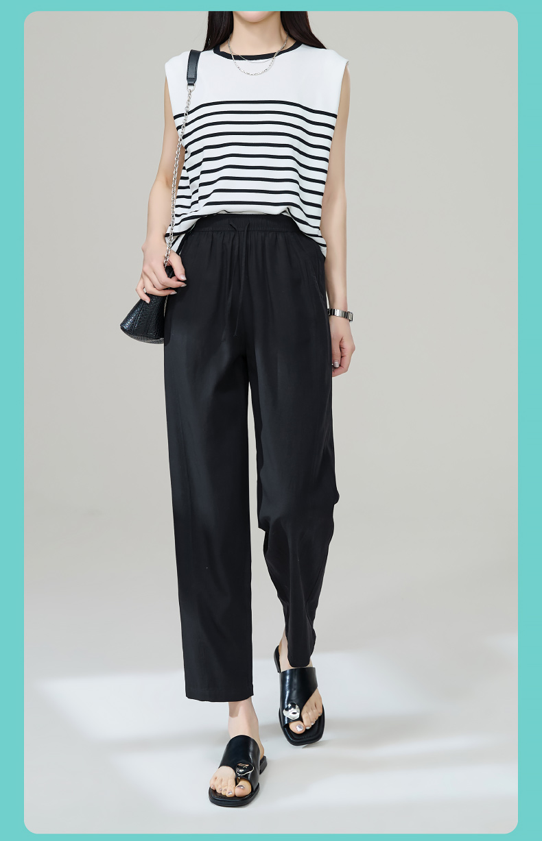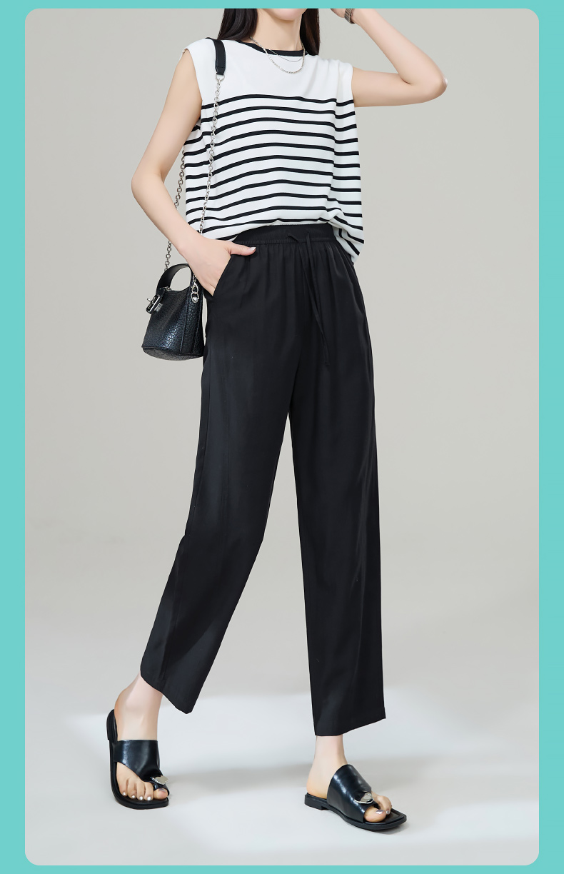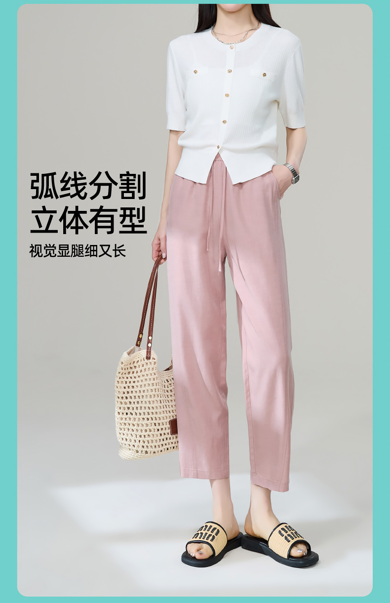 【九分莱赛尔麻哈伦裤】逸阳夏新款高腰宽松休闲通勤萝卜裤1201