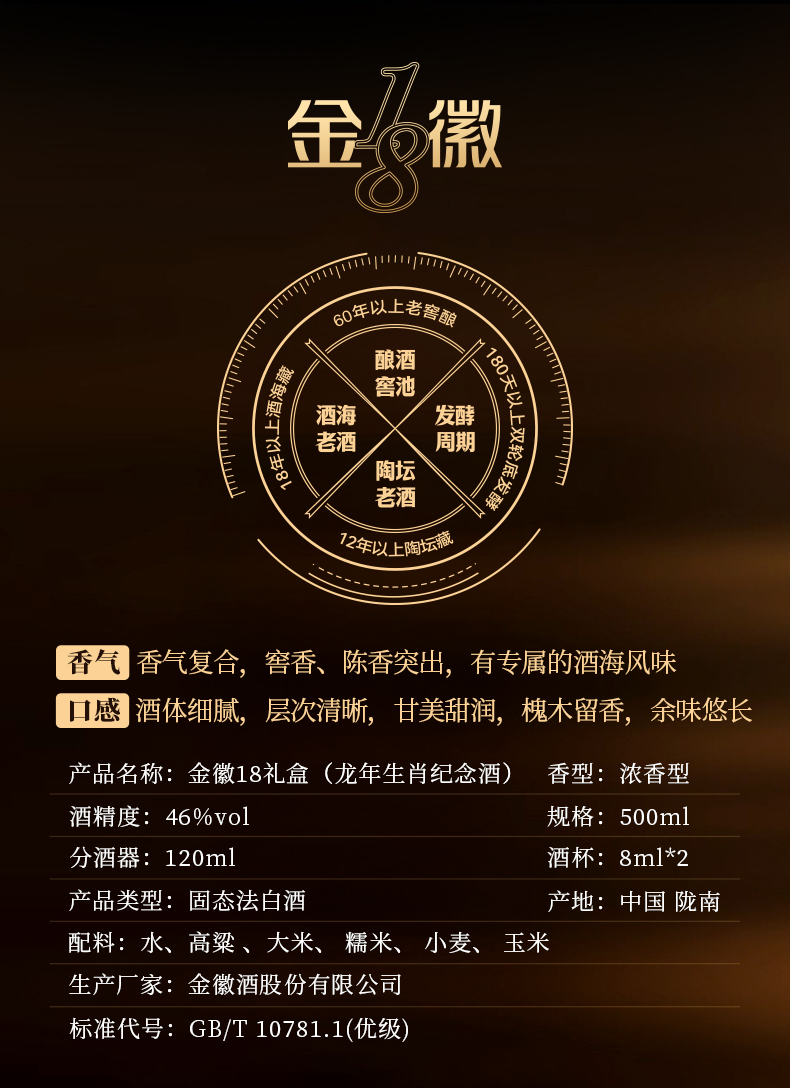 【金徽18 龙年礼盒】金徽酒 46度金徽18 500ml 龙年生肖礼盒