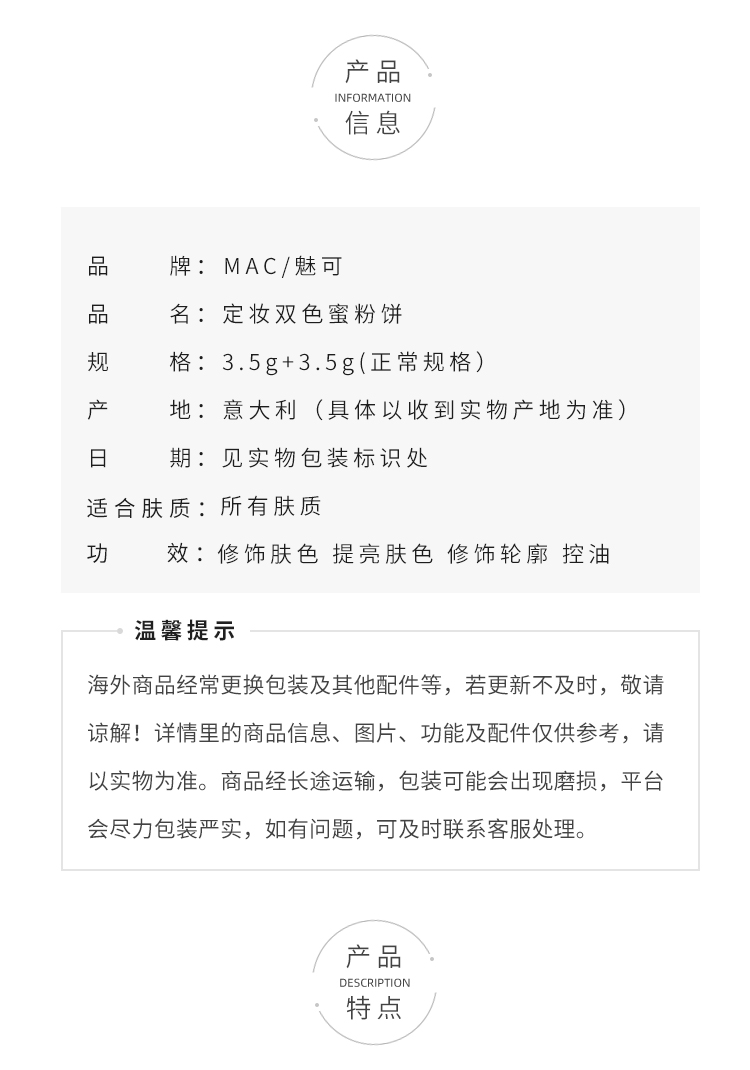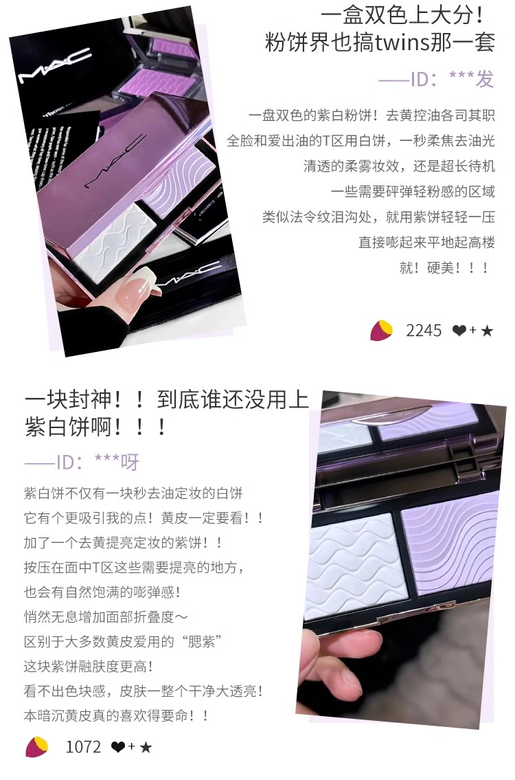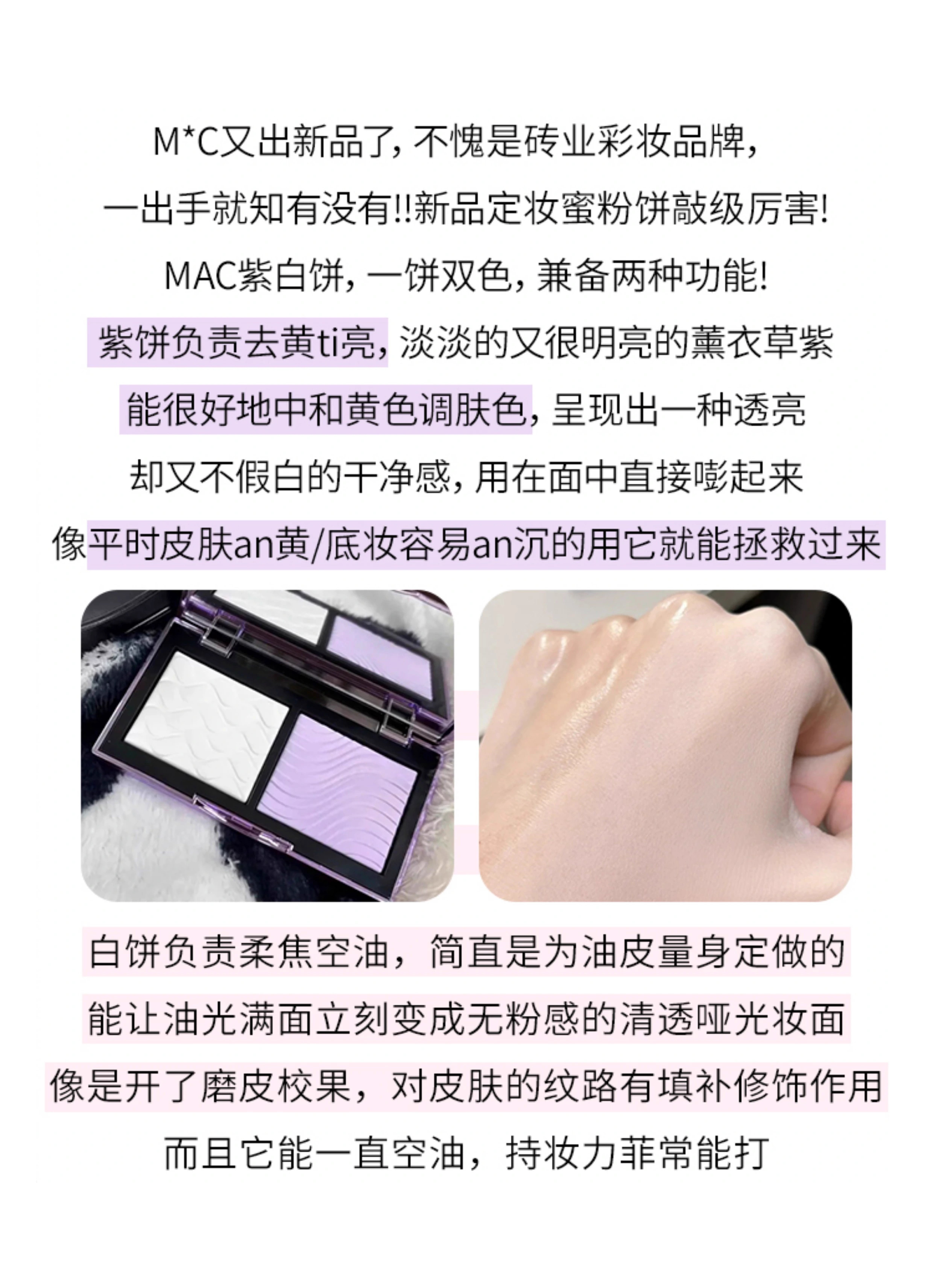MAC/魅可定妆紫白饼散粉粉饼去黄提亮控油定妆不脱妆【CDF】