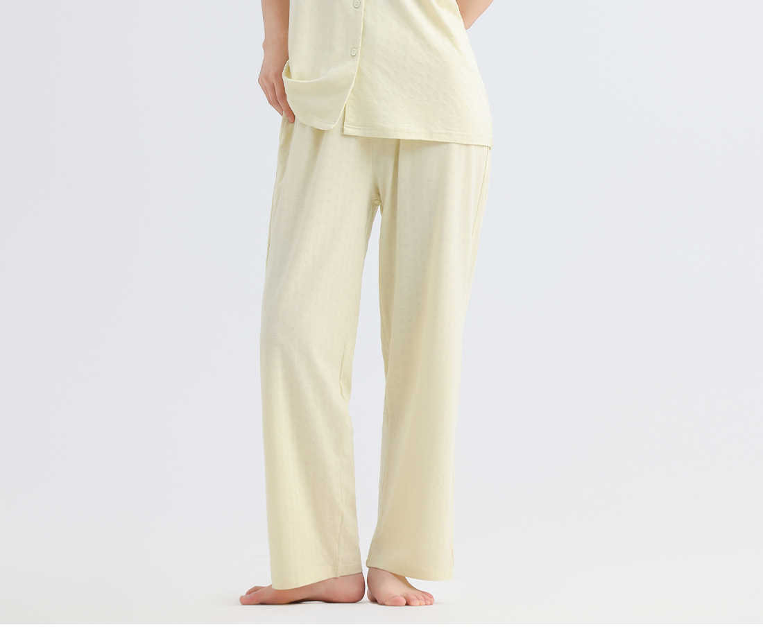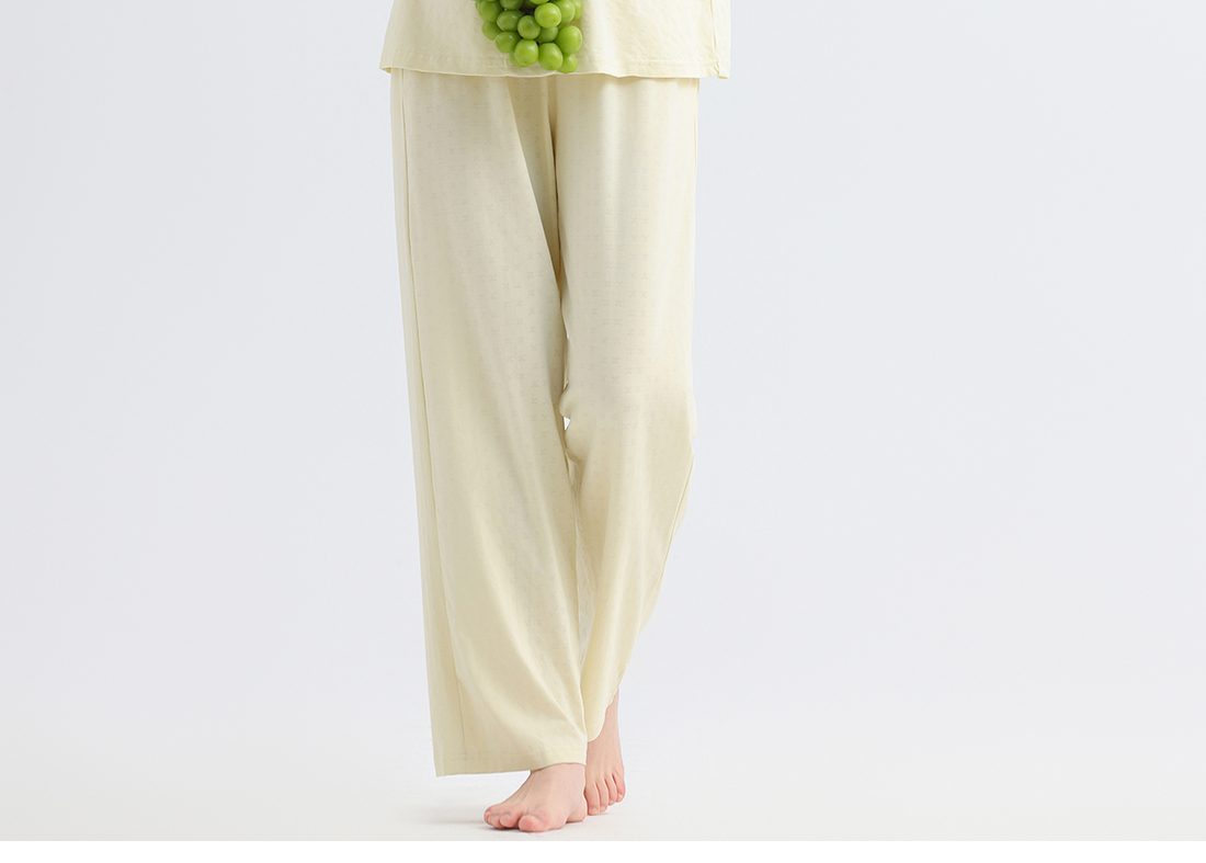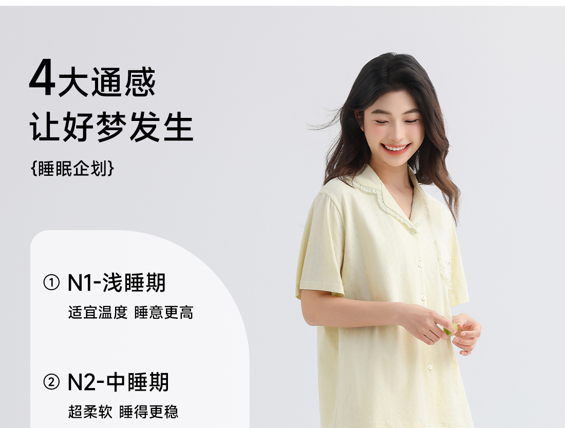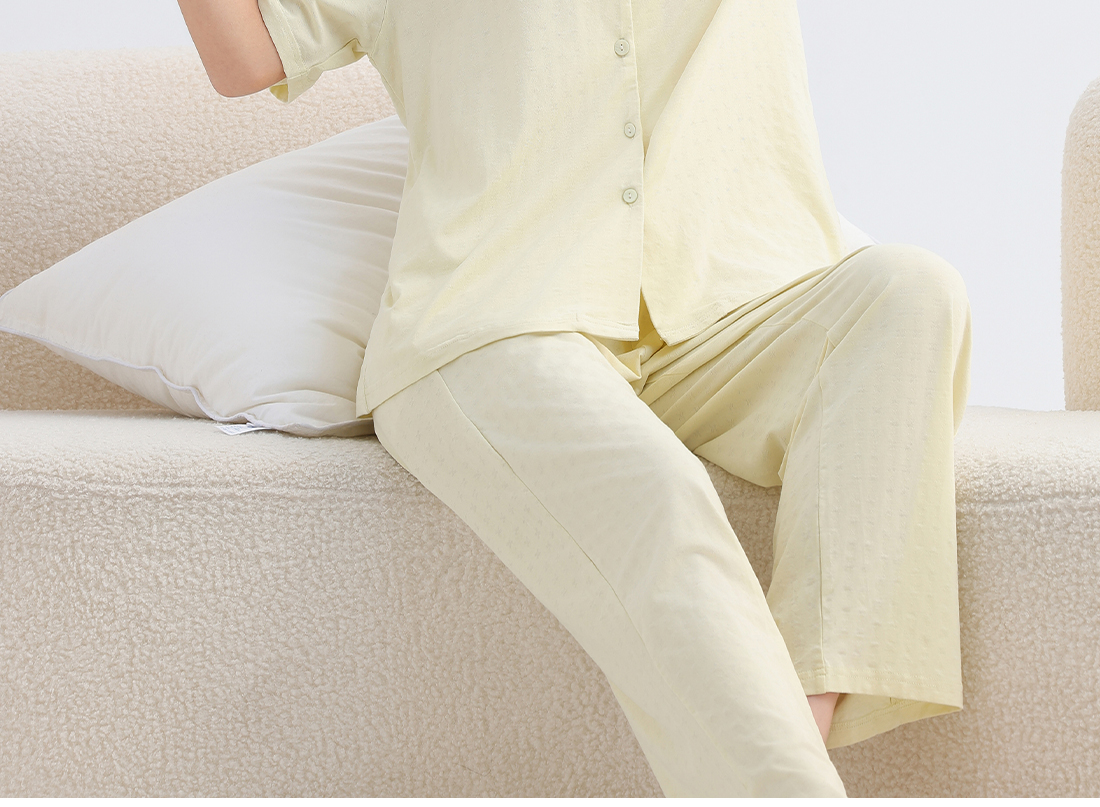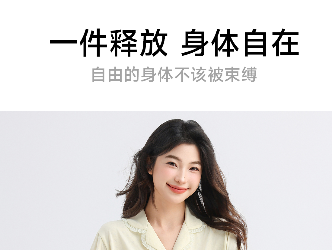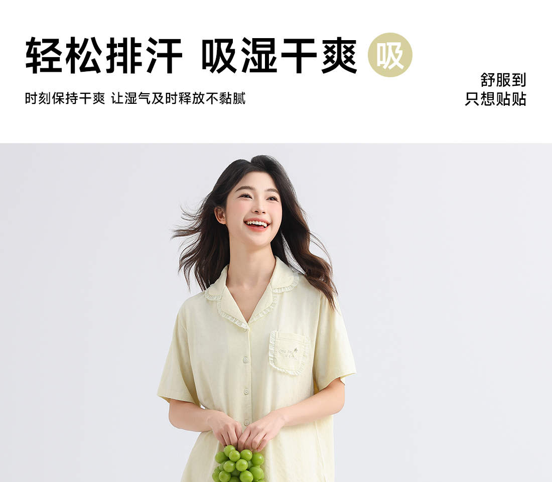 美季美优睡衣女士2025新款纯色棉透气蕾丝花边短袖长裤家居服套装