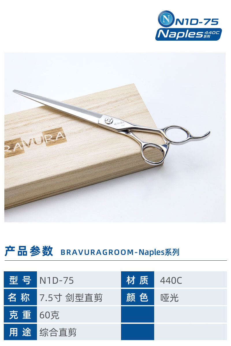剑型直剪 7.5寸 N1D-75综合剪 N意大利BravuraGroom-那不勒斯Naples系列
