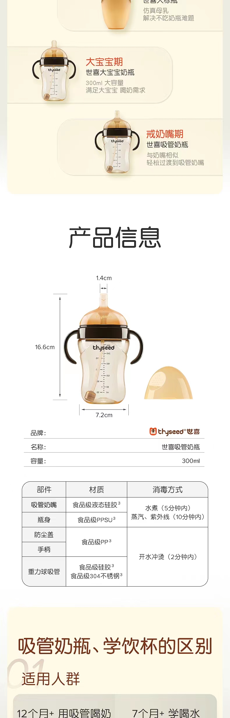 thyseed世喜吸管奶瓶(12个月以上)300ml