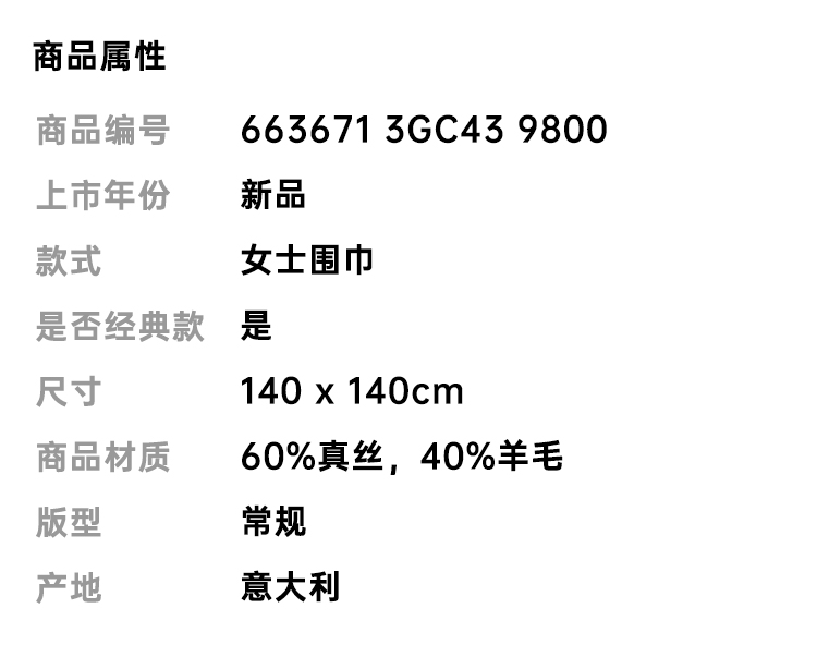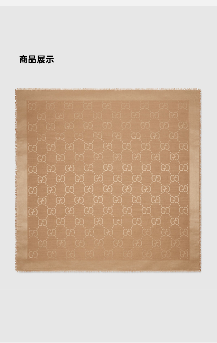 GUCCI 古驰 女士GG提花真丝羊毛披肩 浅棕色 663671 3GC43 9800
