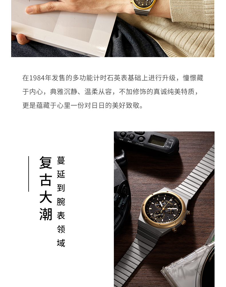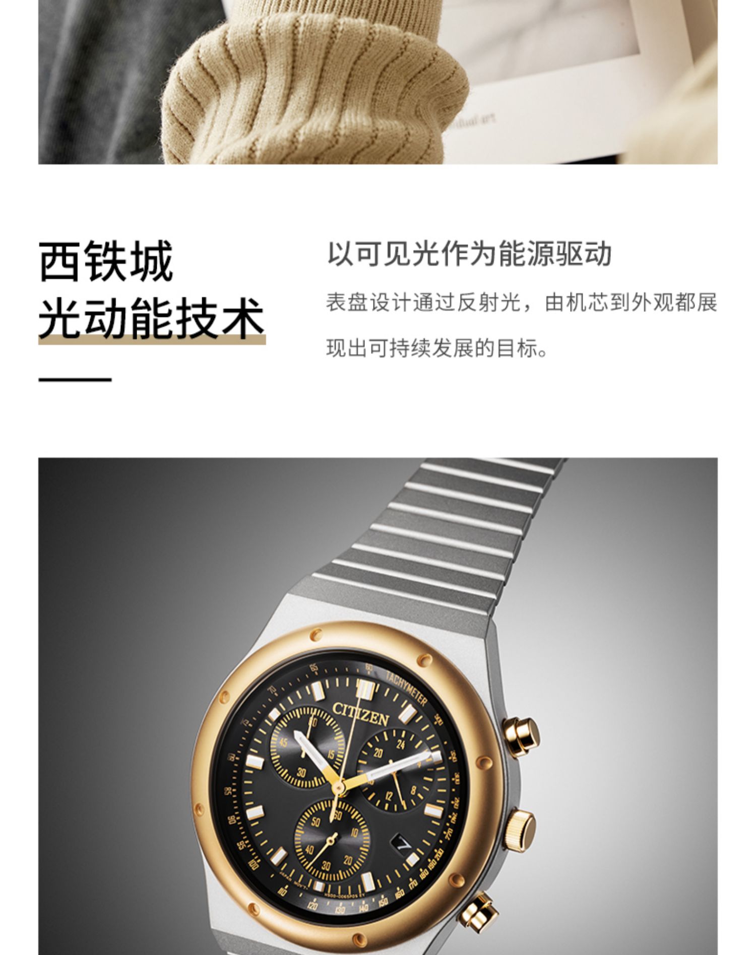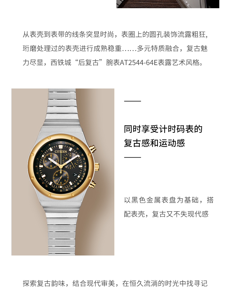 西铁城/CITIZEN复古光动能石英休闲经典男手表AT2544-64E