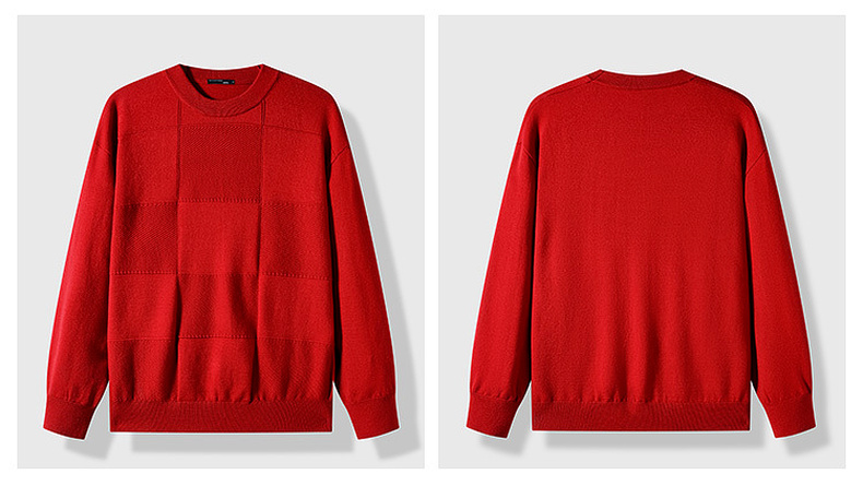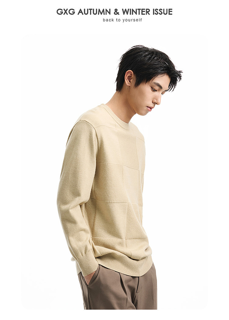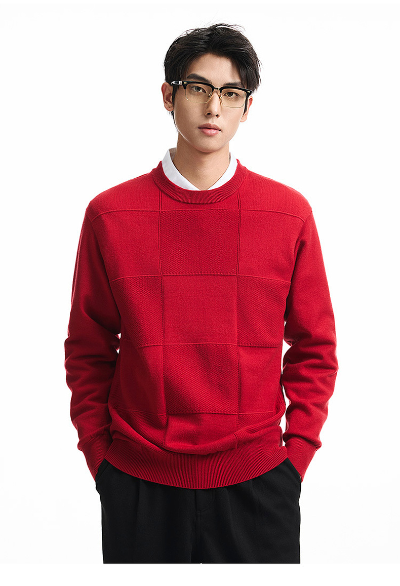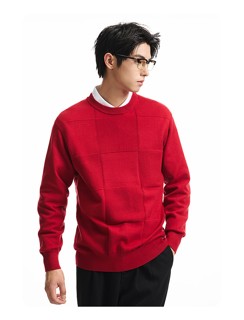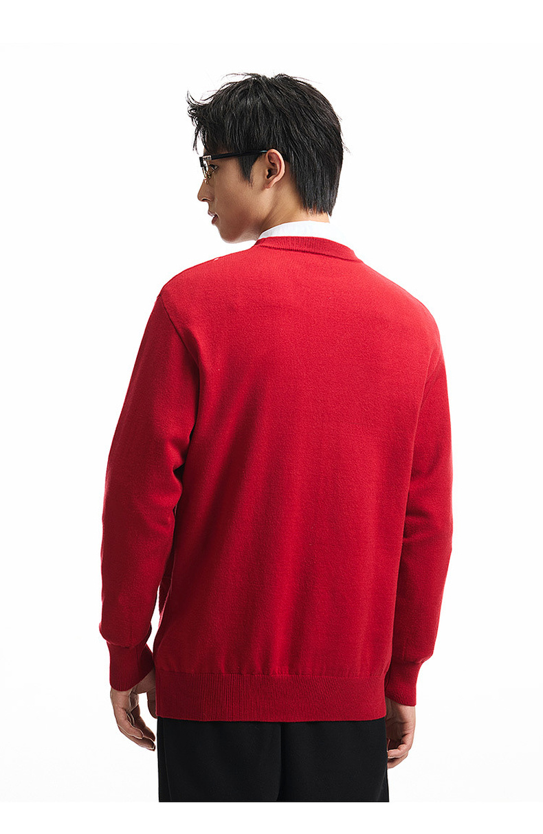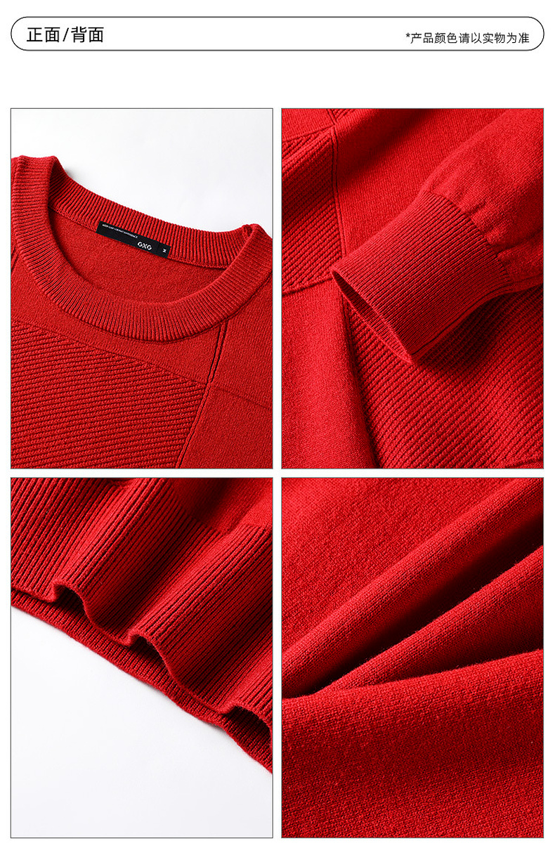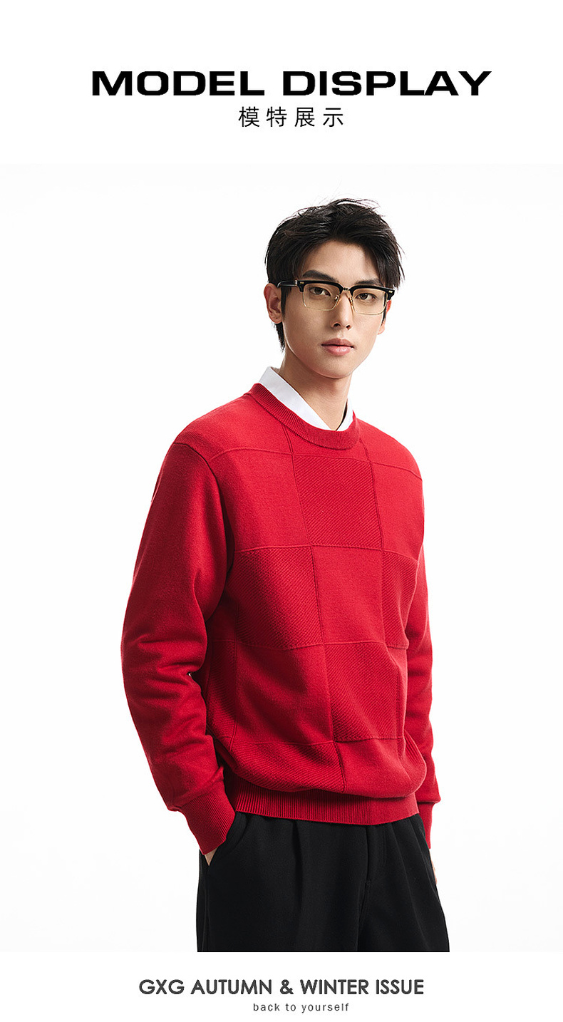 GXG男装【中国红】春季时尚百搭情侣本命年毛衣宽松圆领针织衫K&C