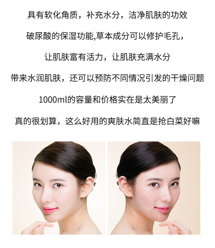 是平时正常规格100ml的整整10倍 平时买套装,水比乳液用的快吧,OK就它了 做水疗,泡纸膜敷脸,平时多拍点,当喷雾,随时随地想喷就喷 再不用心疼啦