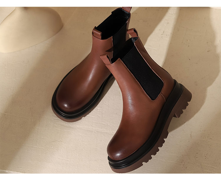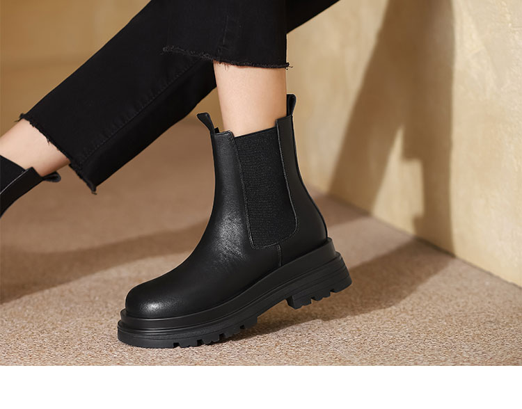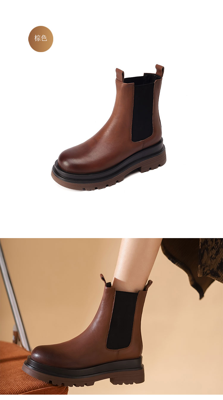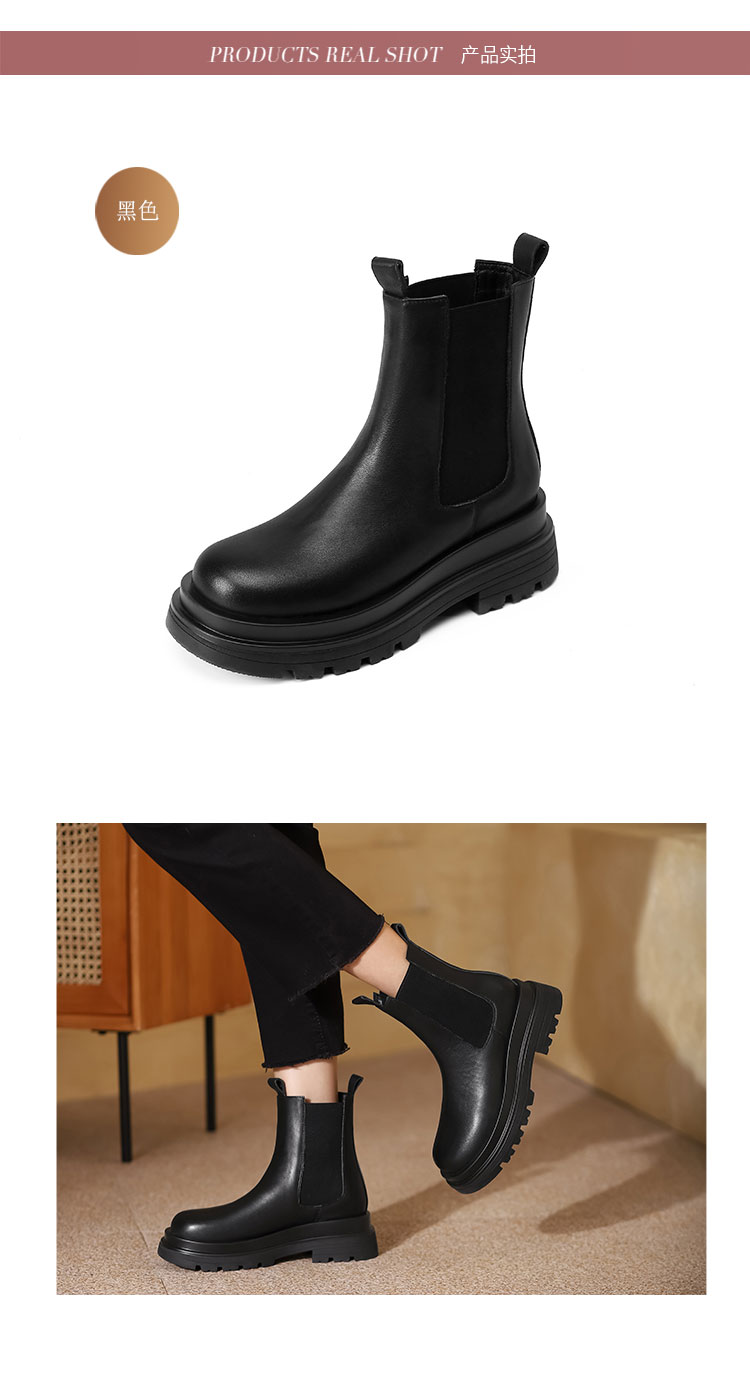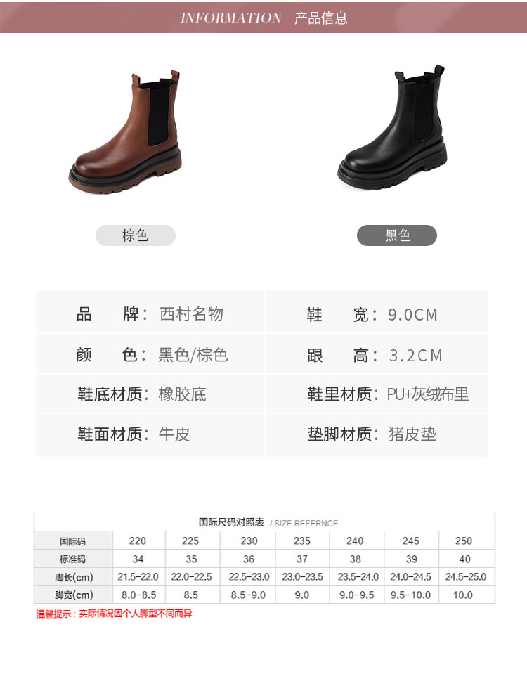 西村名物2021秋冬季款净版厚底潮流烟囱靴中跟休闲女鞋T21DS45841