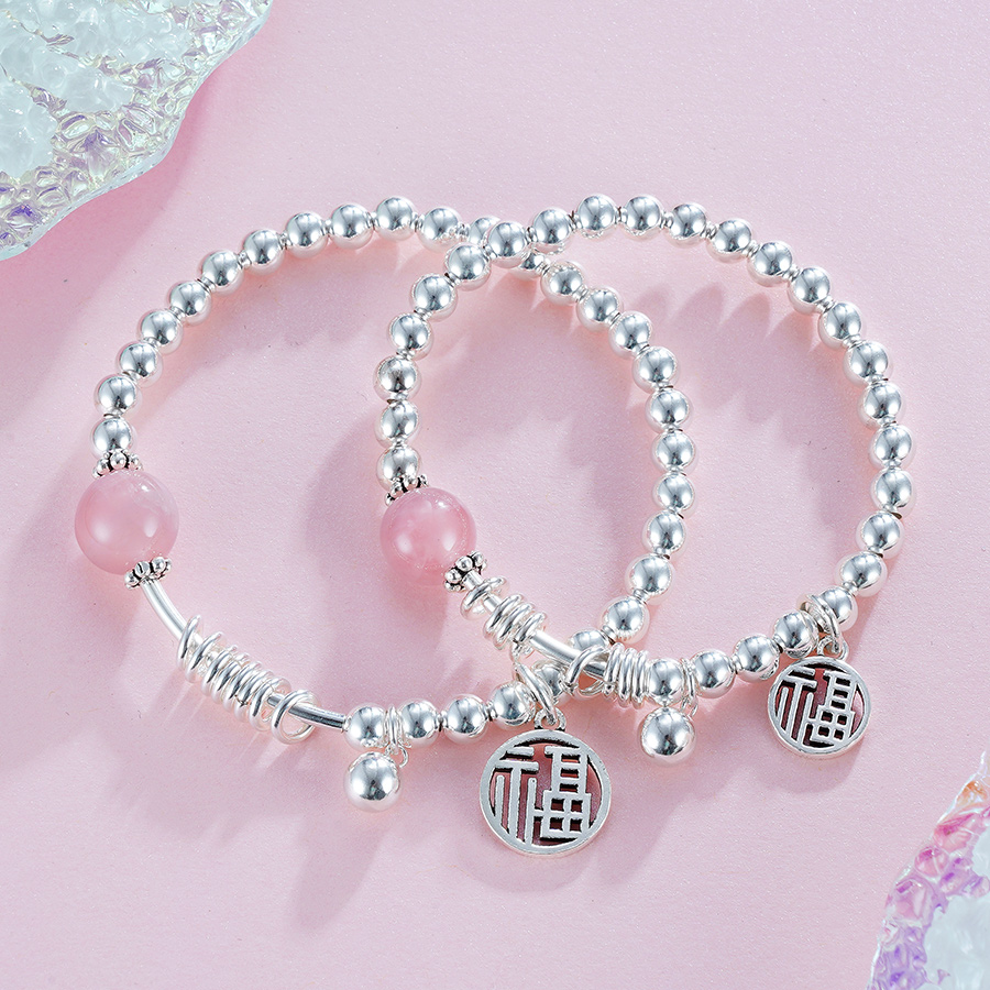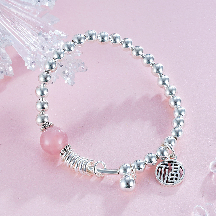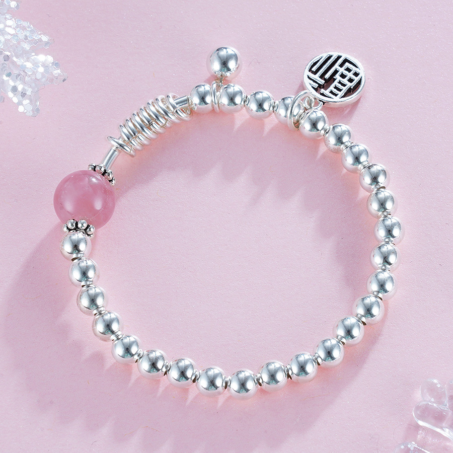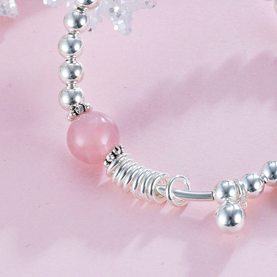 【规格】:弹力绳手串,成人款内径约55mm,,儿童款内径约45mm,银珠约5mm,粉晶约10mm