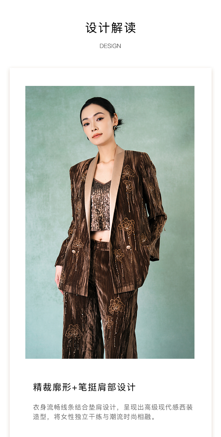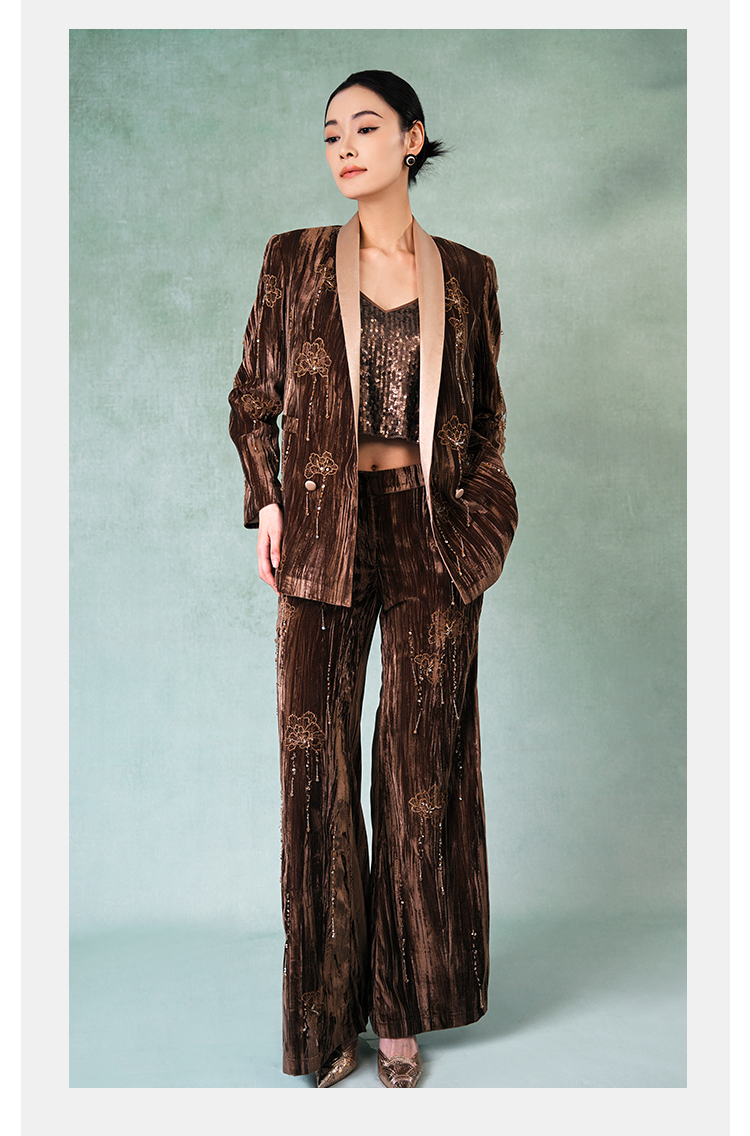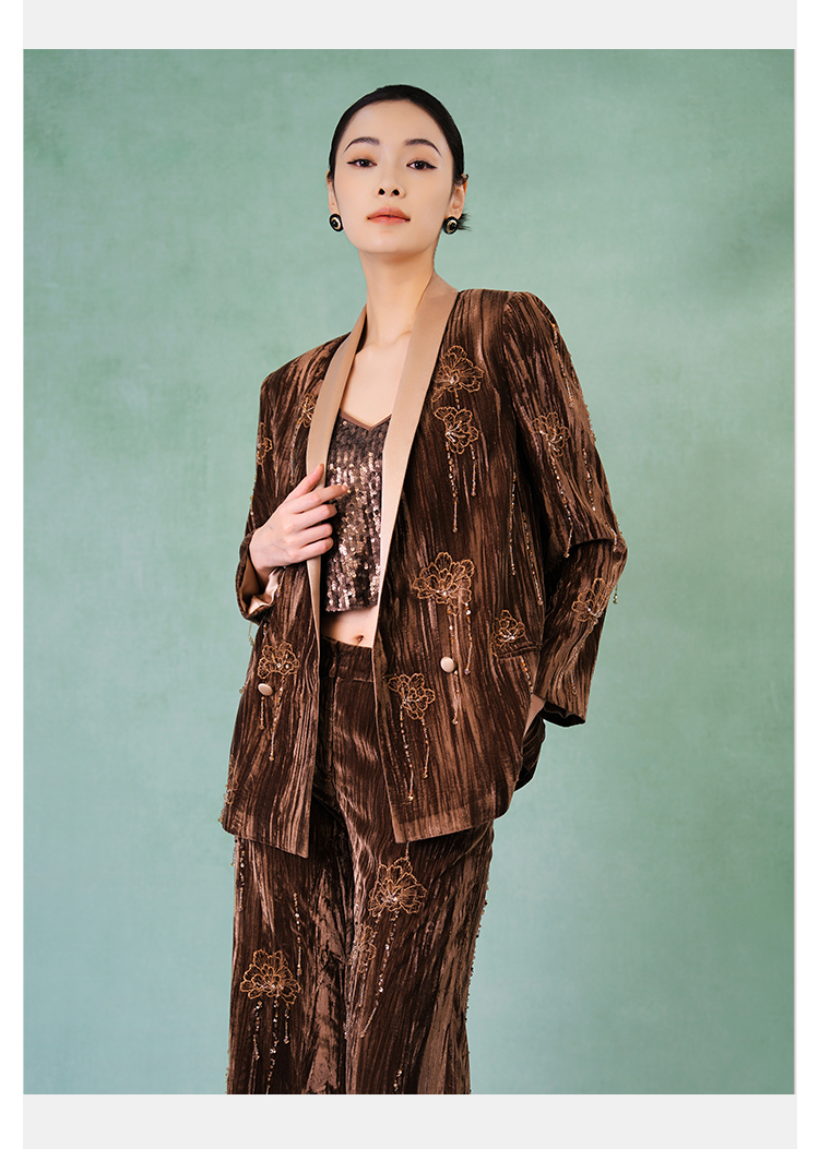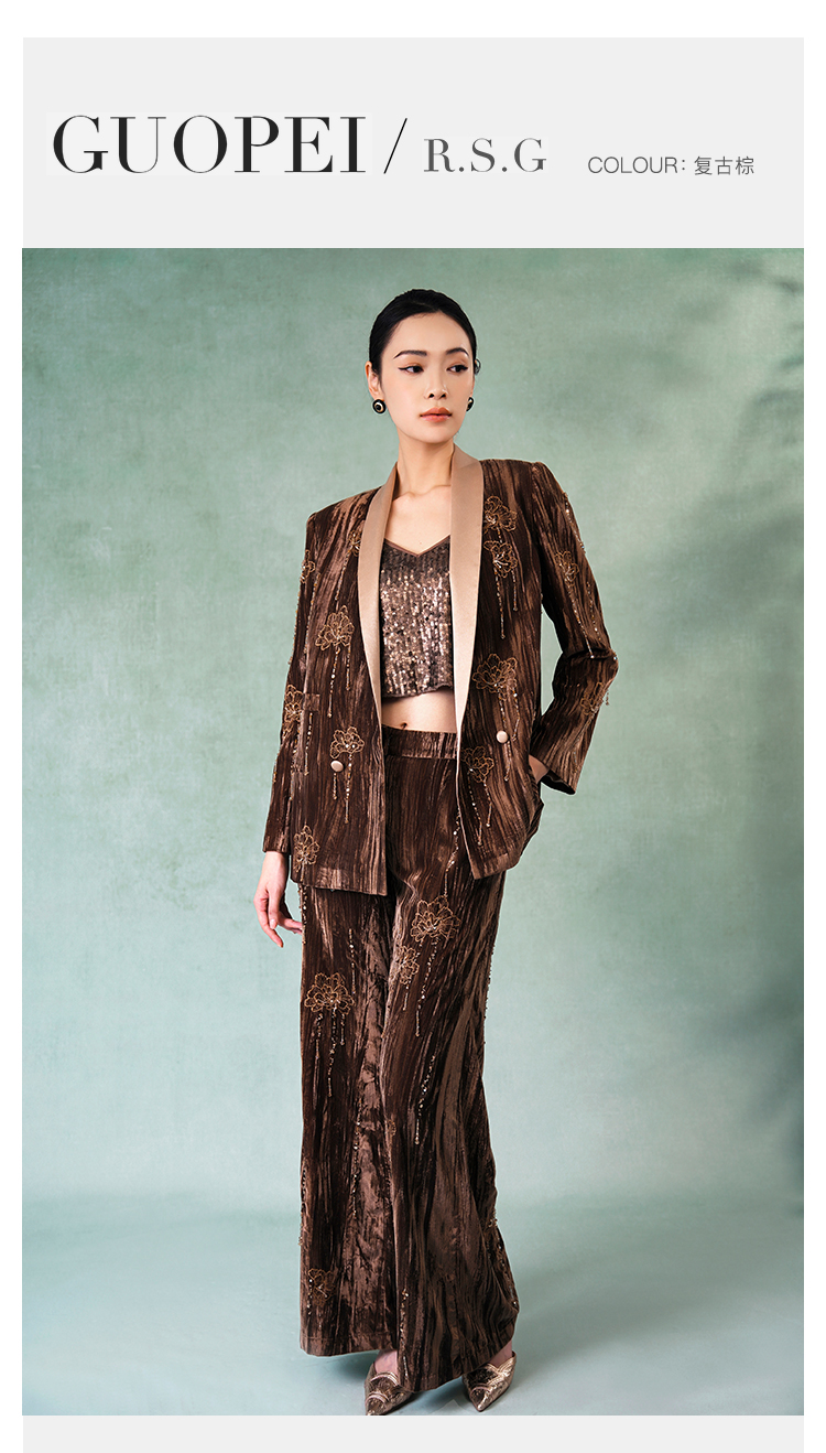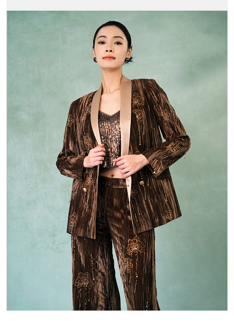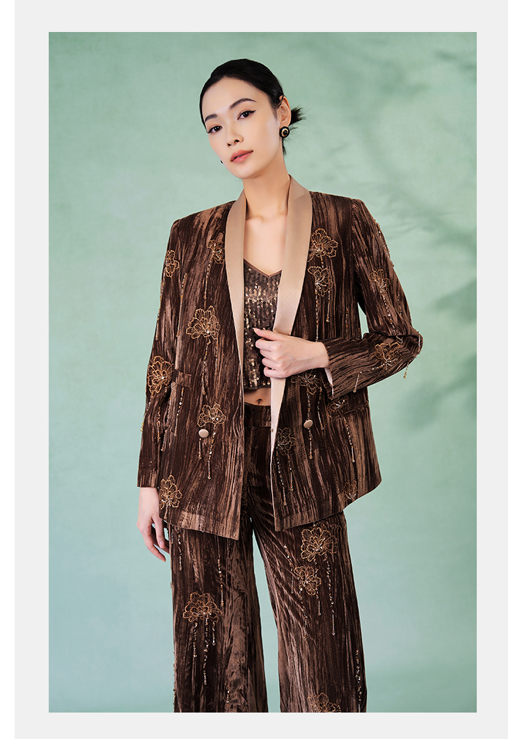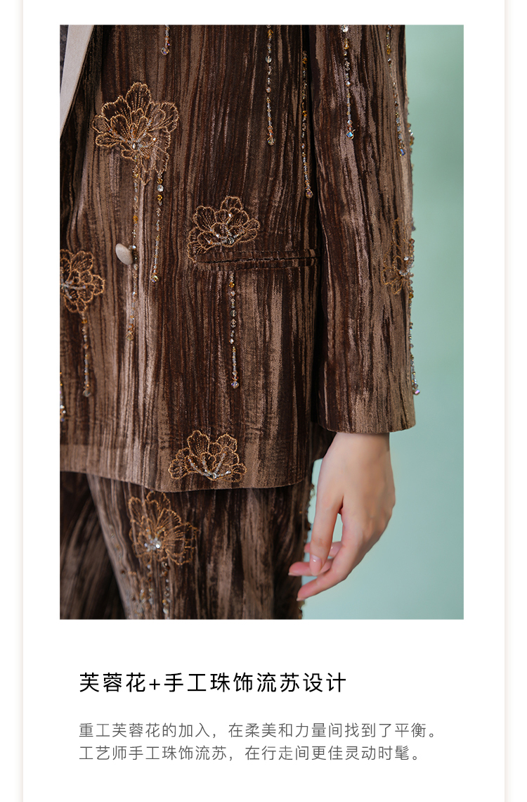 郭培成衣品牌精品系列重工芙蓉花丝绒西服套装