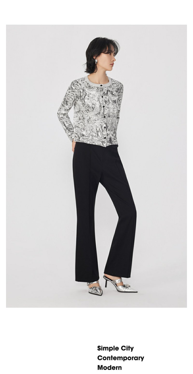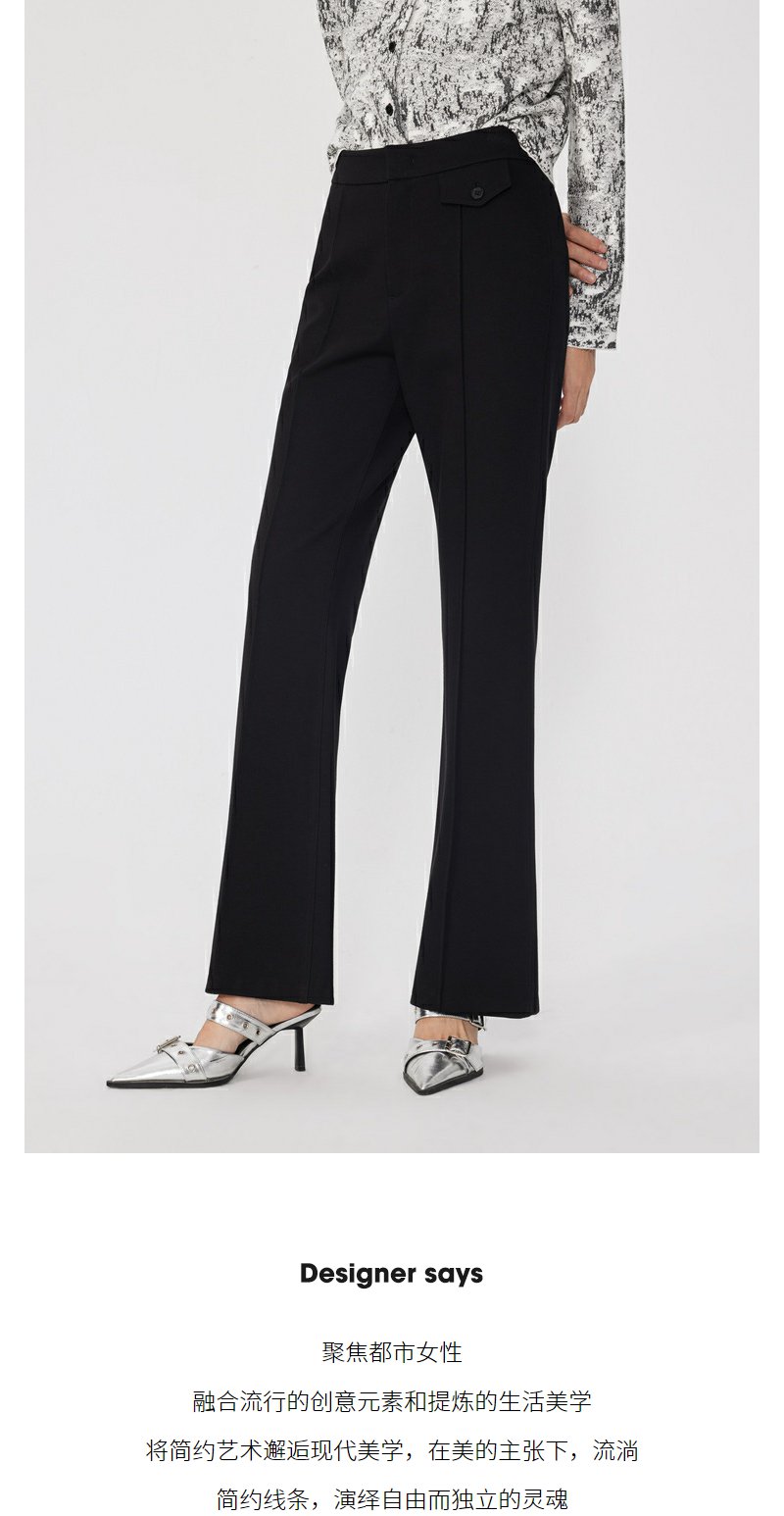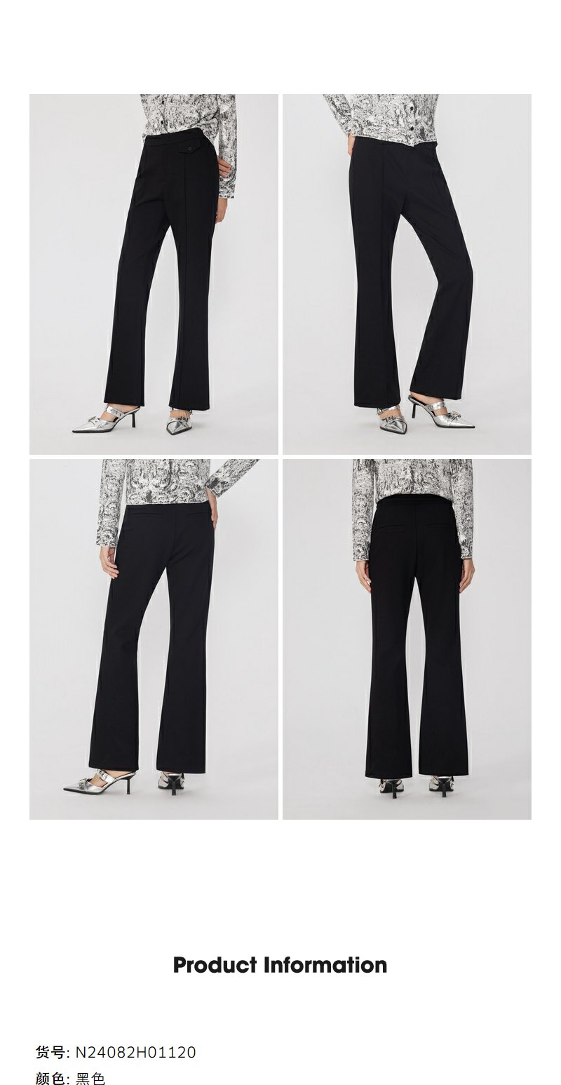 NEELLY纳俪2024秋季商场同款黑色通勤风微喇休闲裤女新款显瘦长裤N24082H01120