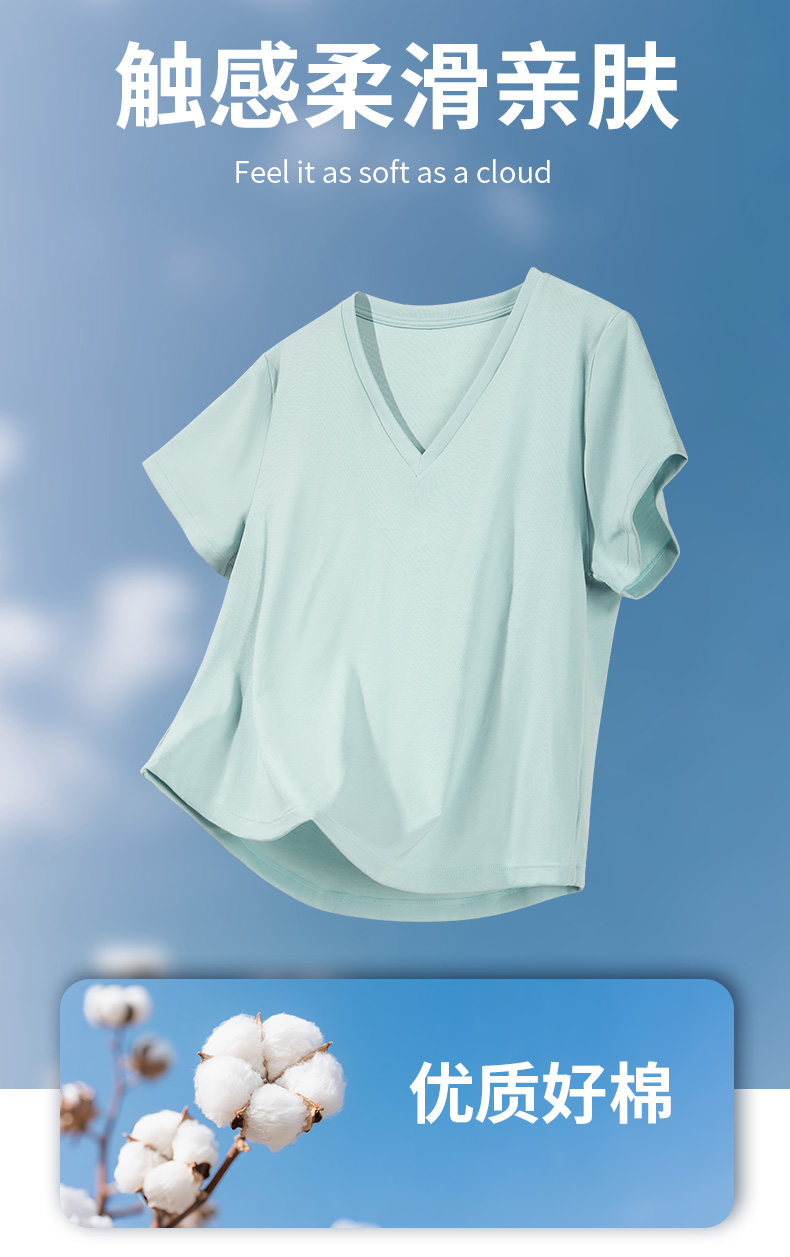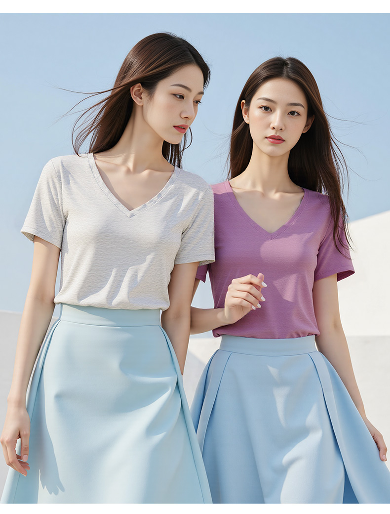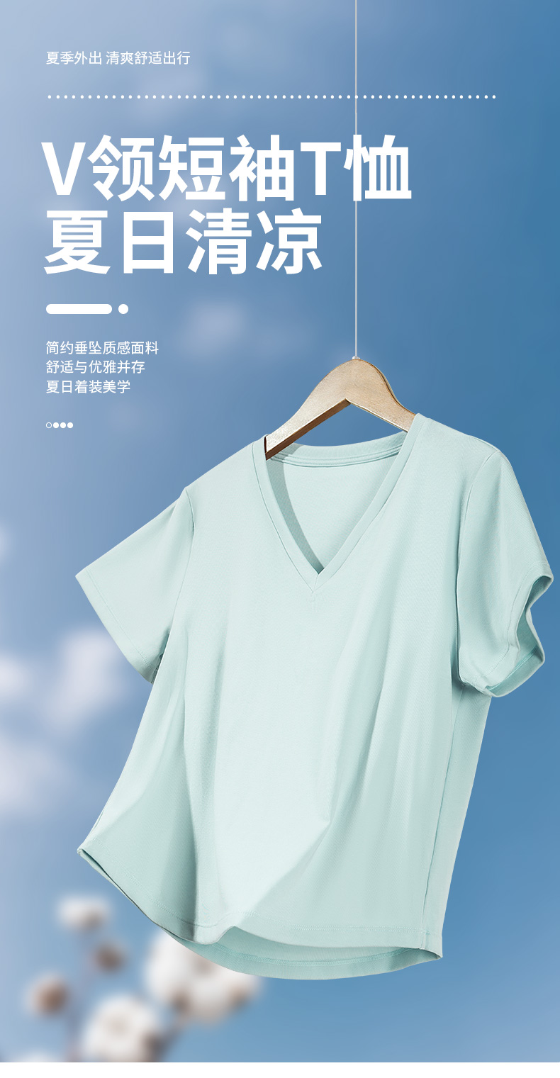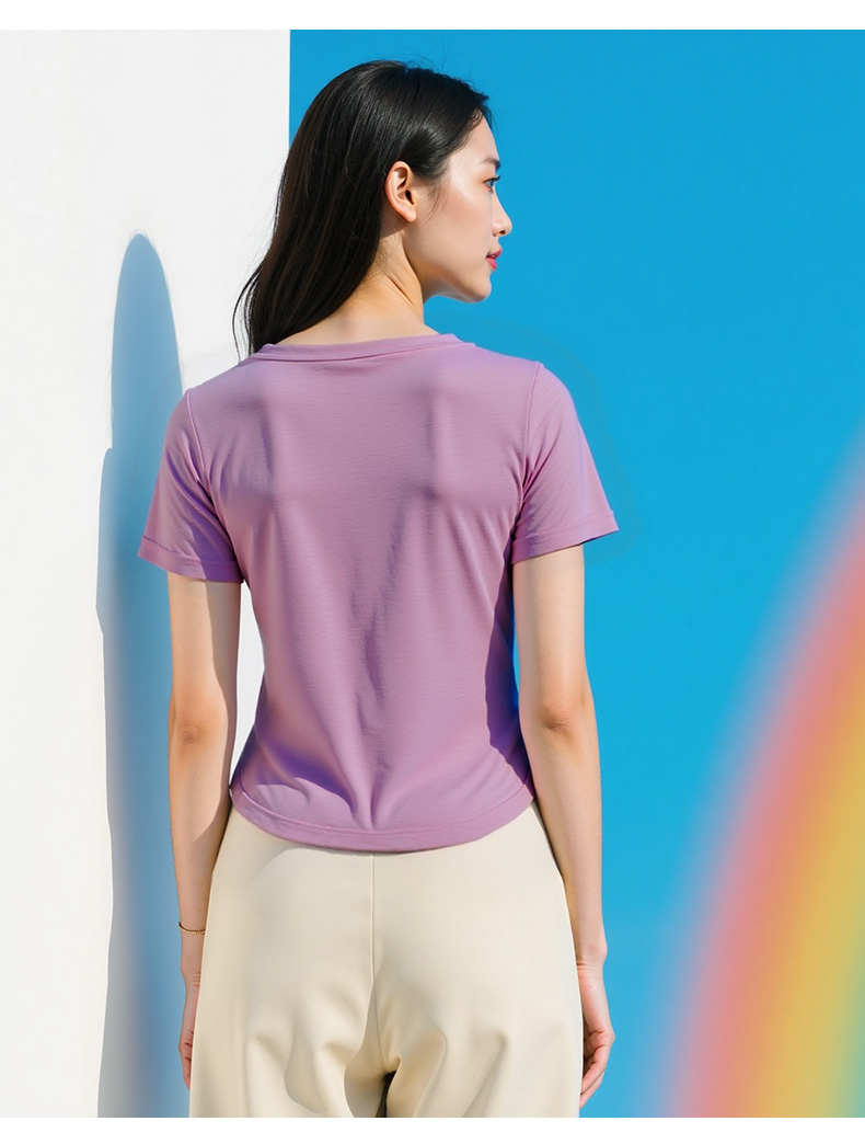 悠妍简约V领短袖T恤DX25529 莱赛尔天丝面料瑜伽服女运动上衣