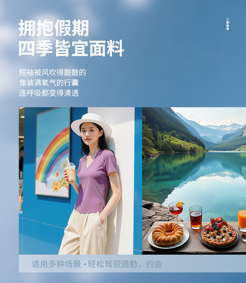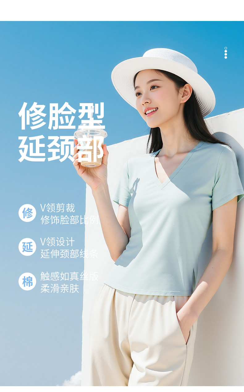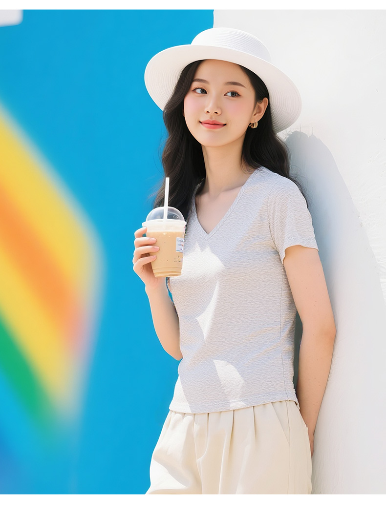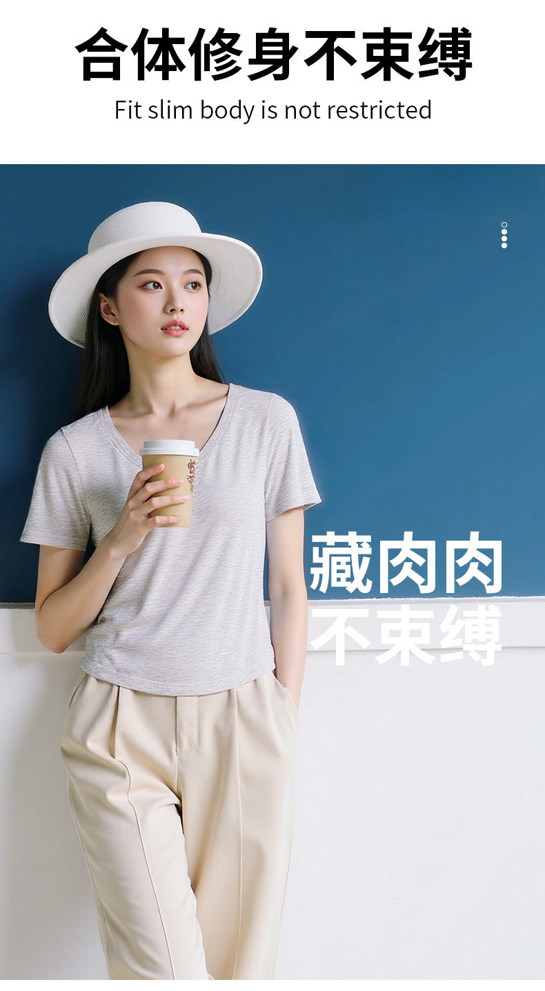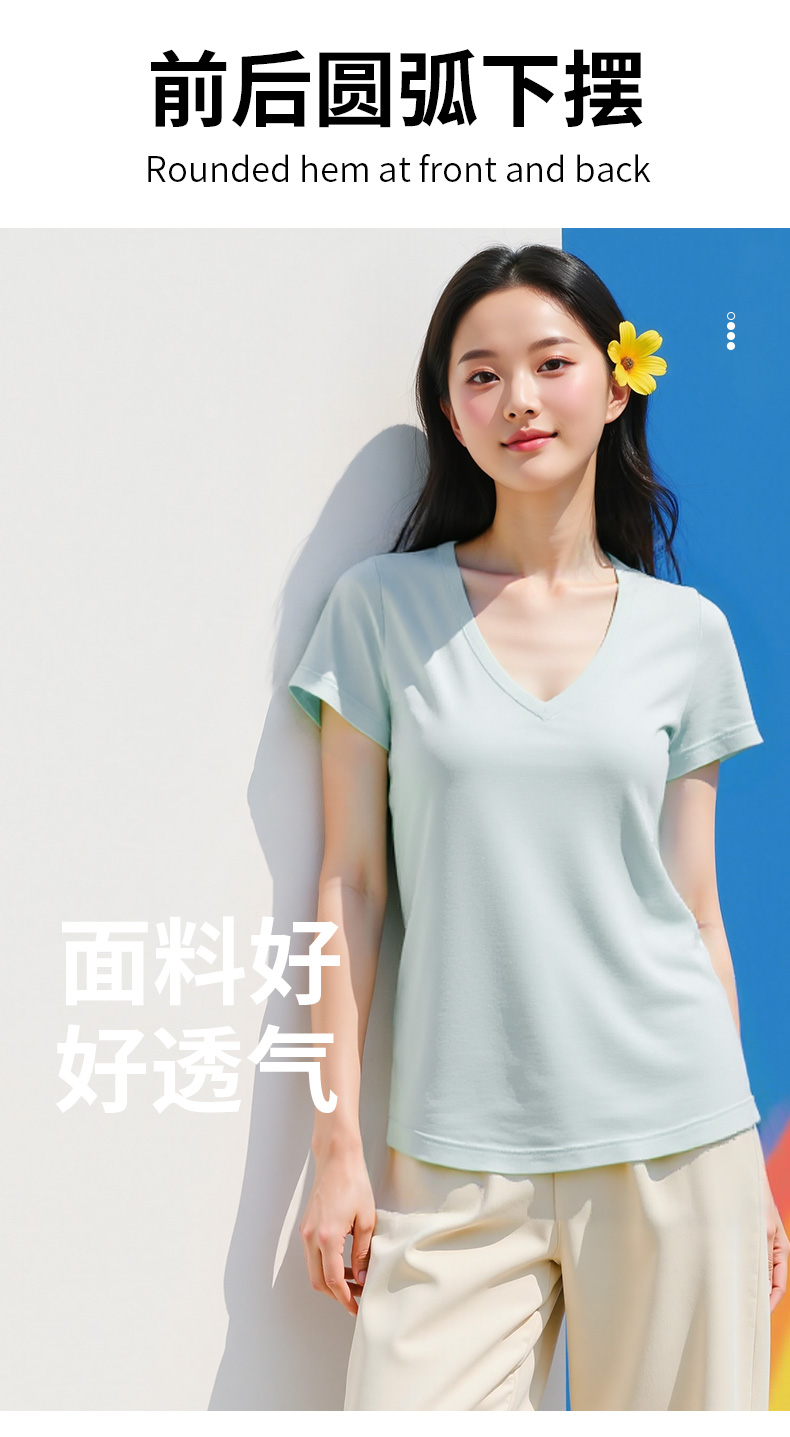 悠妍简约V领短袖T恤DX25529 莱赛尔天丝面料瑜伽服女运动上衣