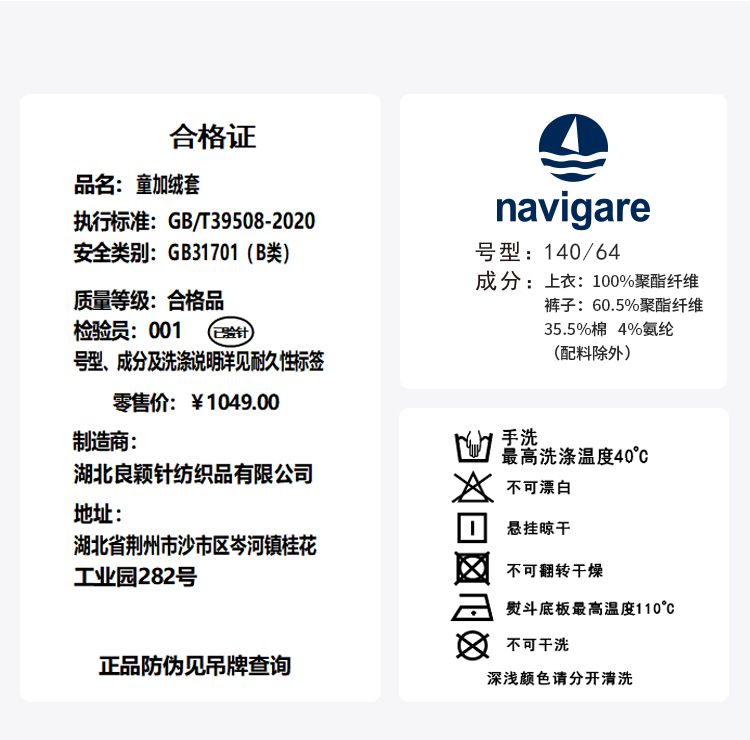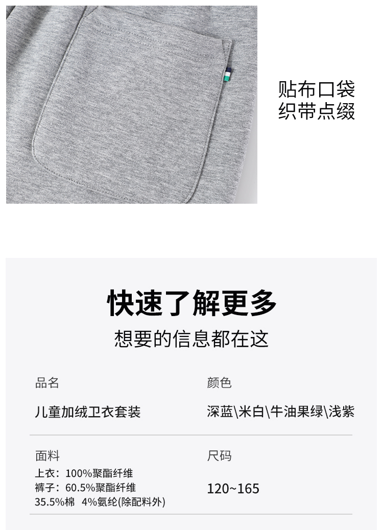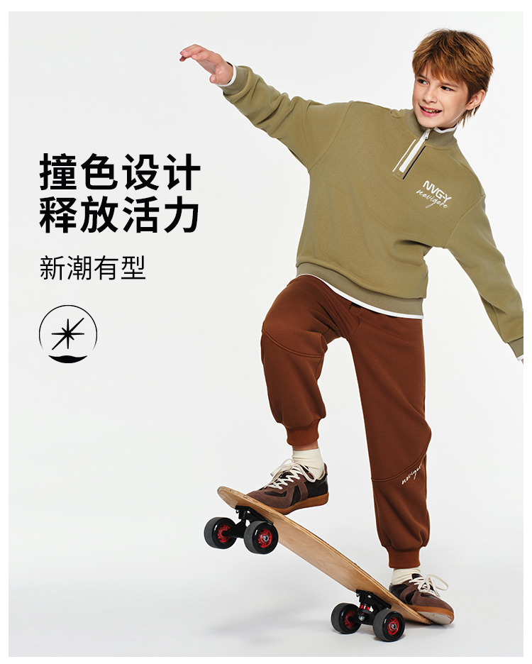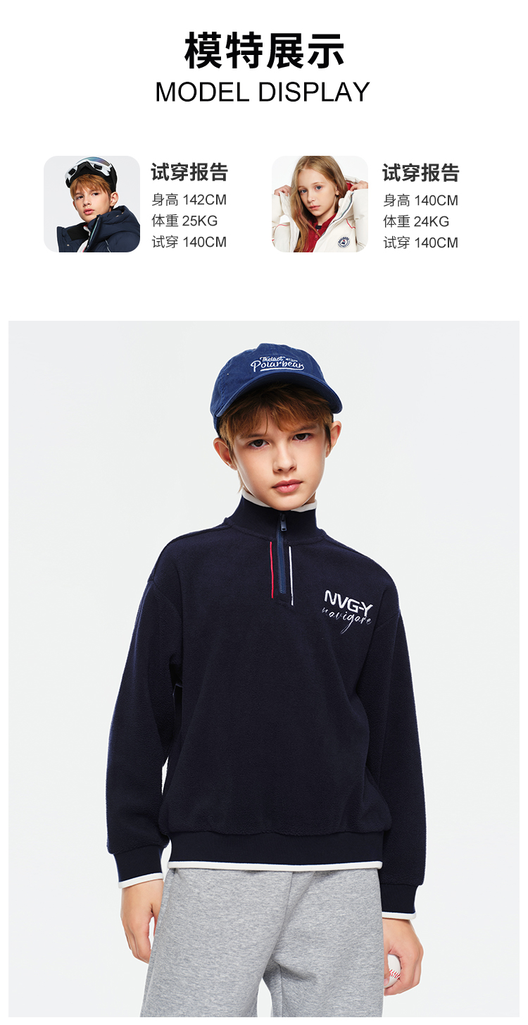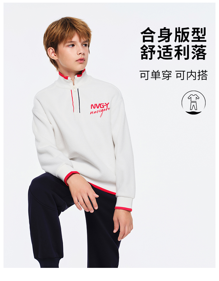 【纳维凯尔】【加绒套装】【120-165】Navigare小帆船男女童冬款加绒卫衣套装