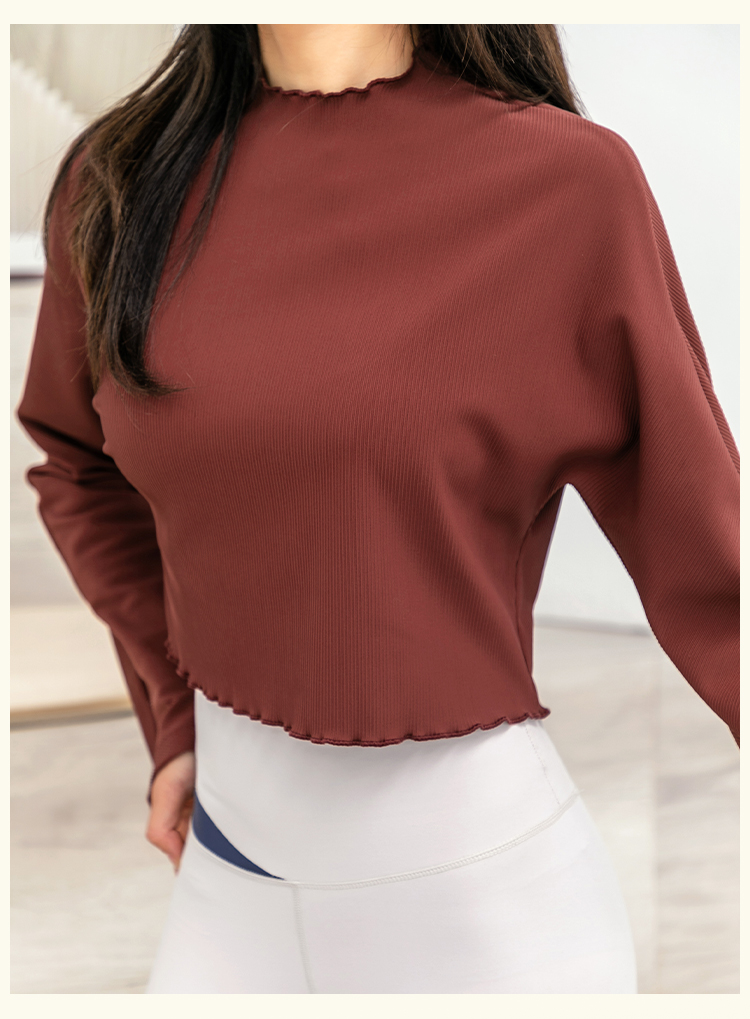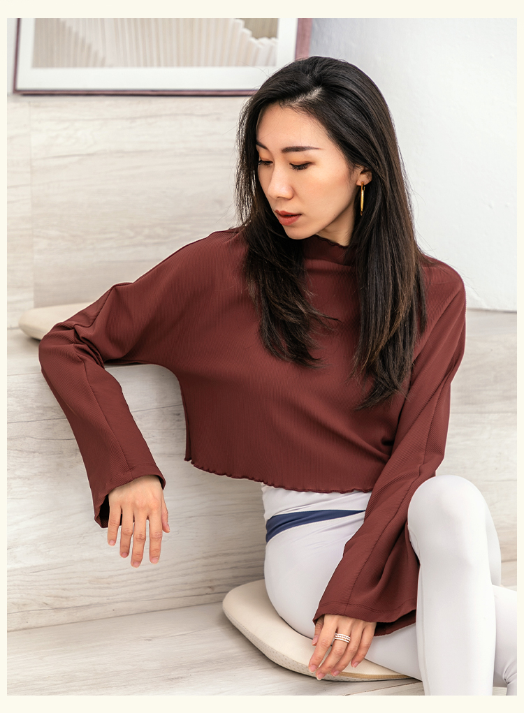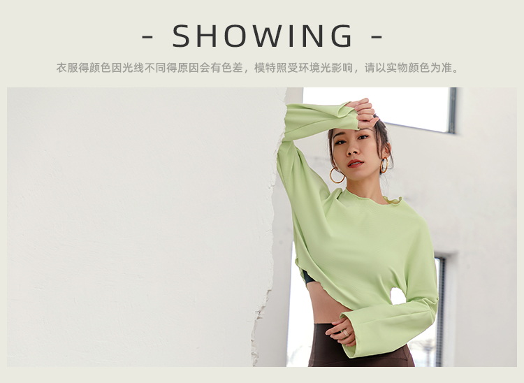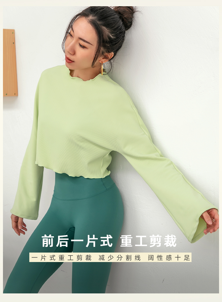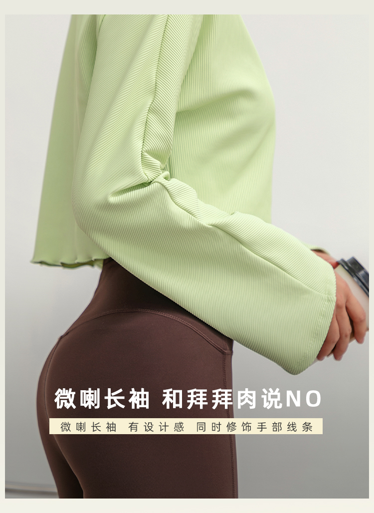 【裸感拼肌理】V领带胸垫瑜伽服上衣女短弹力紧身衣显瘦长袖