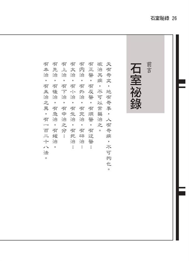 清初著名醫學家陳士鐸一生勤於著述,文獻中找得到書名者共十六本,現存並廣為人知者有《石室祕錄》、《辨證奇聞》、《辨證錄》、《洞天奧旨》等,本書為其中之最,但坊間已絕版,故重新校訂、編輯發行,以應讀者所需。其中多數標題均為編輯所加,目的在提綱挈領、便於閱讀與檢索。
