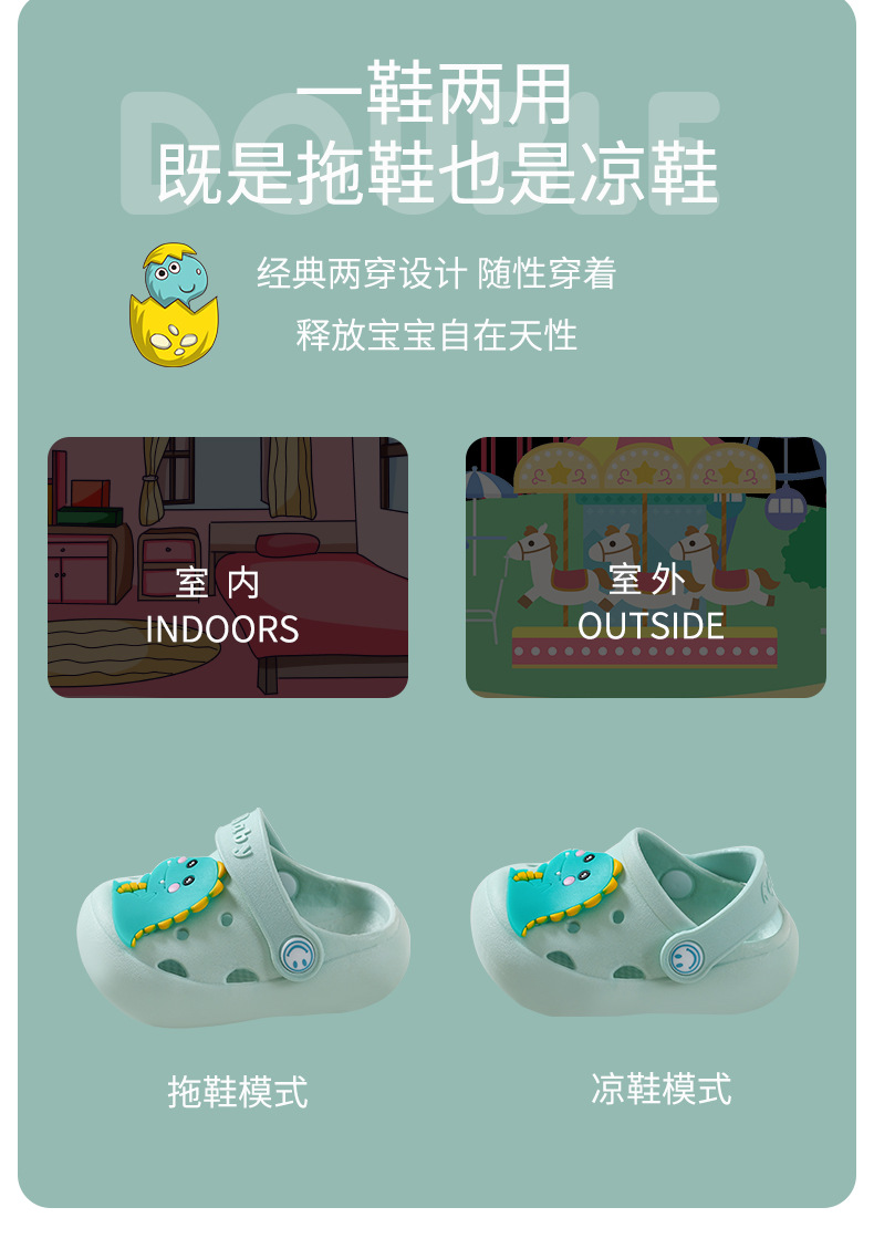 儿童拖鞋夏室内防滑软底拖鞋儿童洞洞鞋包头婴幼儿男女童宝宝拖鞋