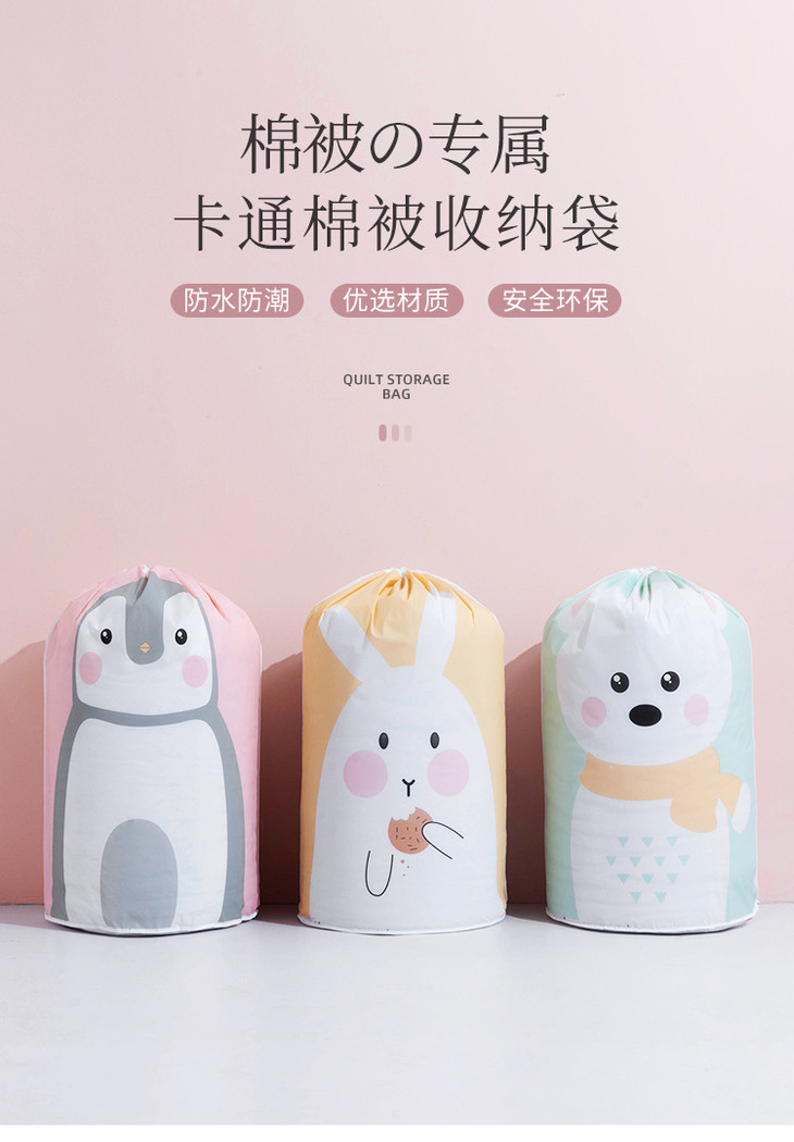 【圆筒收纳袋3个装】新款PEVA圆筒型束口棉被袋 防水防尘印花收纳袋