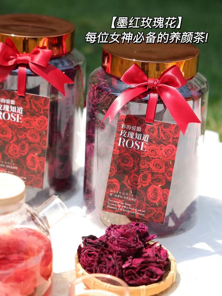 【墨红玫瑰花茶】是法国引进,生长在云南大理的。
