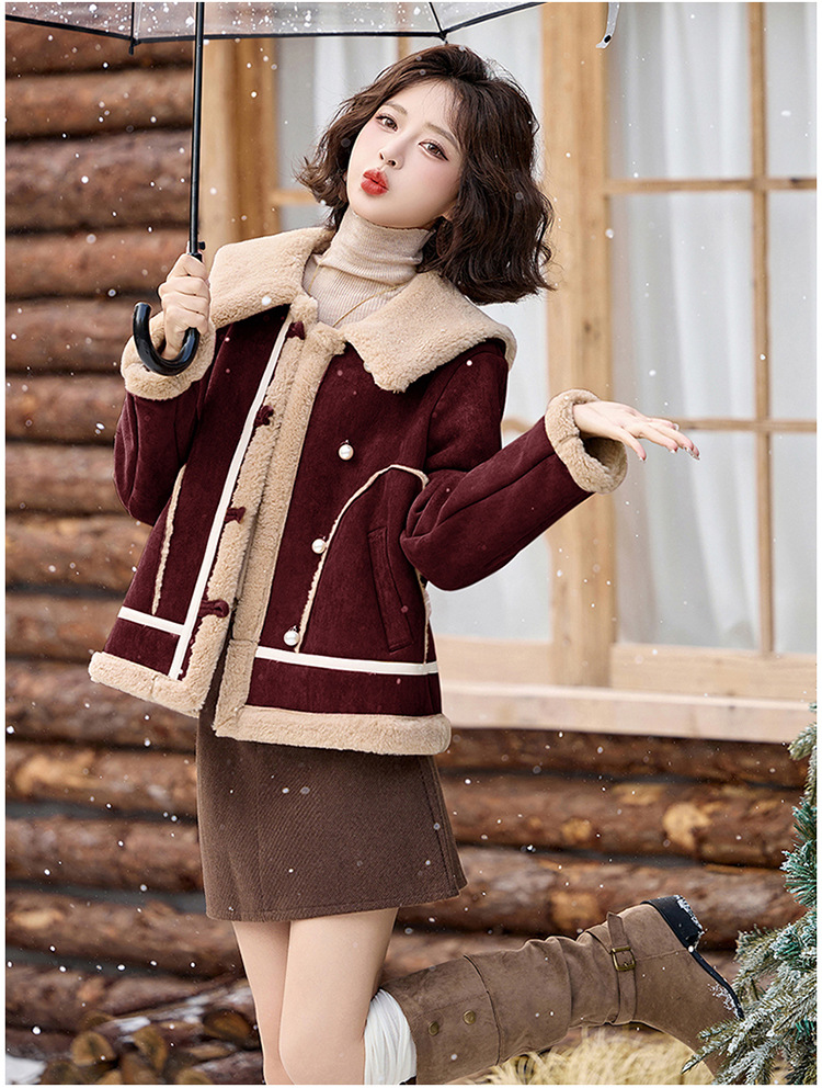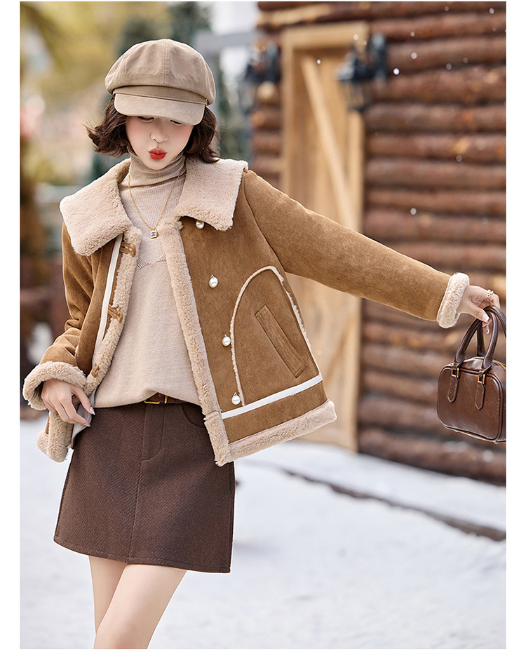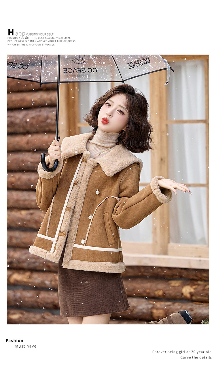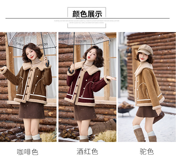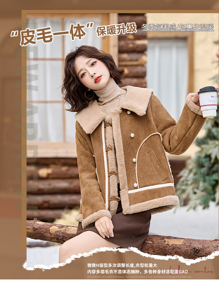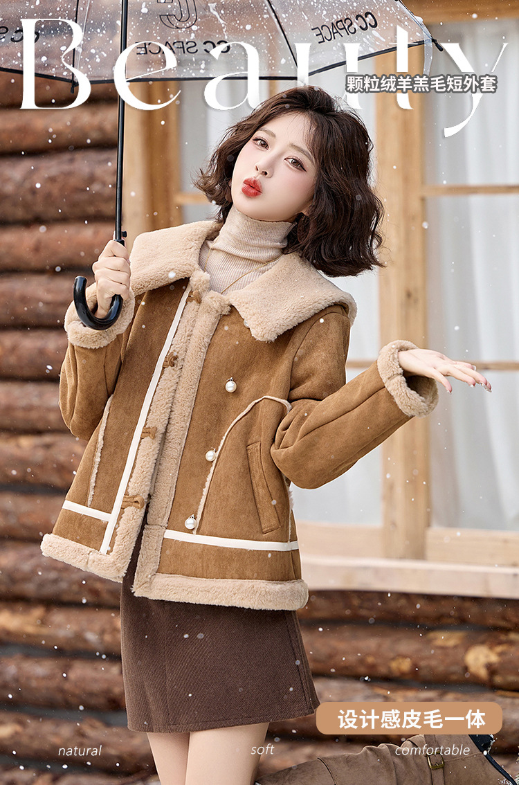 翻领短款羊羔毛外套,加厚小个子棉衣棉服HR-BX2690