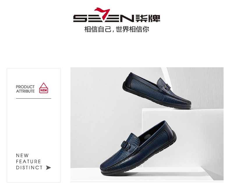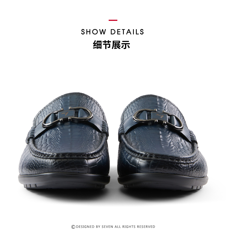 柒牌男鞋真皮透气皮鞋2024新款男士商务休闲一脚蹬套脚平底懒人鞋 126X70430