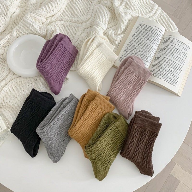 【百搭又耐看】羊毛麻花袜子女长袜加厚保暖纯色秋冬外穿高颜值ins潮堆堆袜。ry