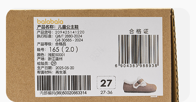 巴拉巴拉童鞋儿童勃肯鞋女童拖鞋加绒2025新款秋冬鞋子舒适潮防滑