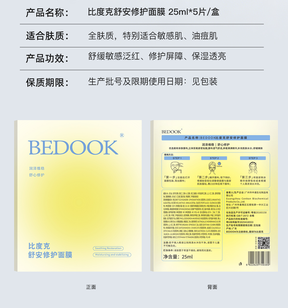 【舒缓+修护】比度克舒安修护肤面膜舒缓修护泛红敏感肌强韧屏障