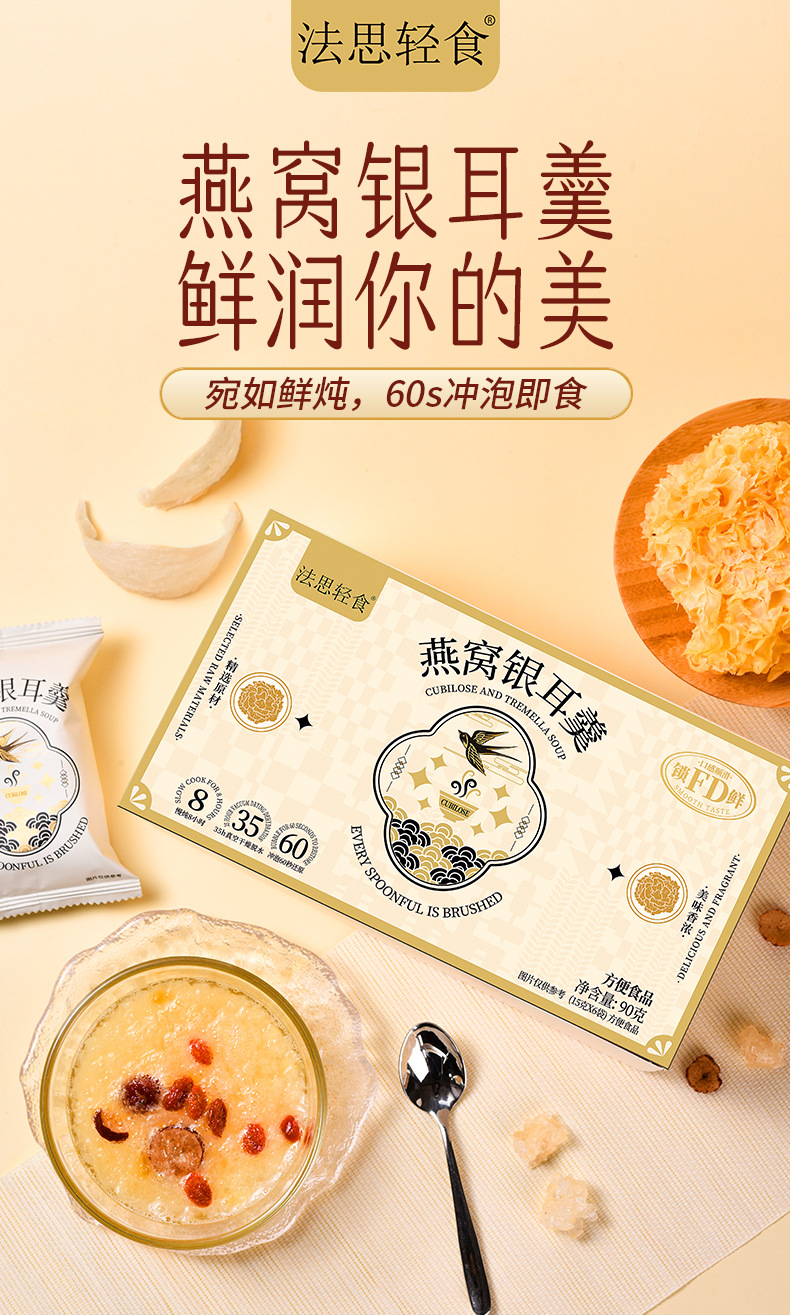【燕窝银耳羹!鲜润你的美】轻食燕窝银耳羹免煮冲泡早餐即食冻干银耳羹红枣枸杞送礼盒。独立小包,方便携带。ry