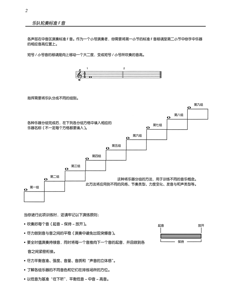 《管乐队标准化热身训练教程》旨在更好地组织日常排练和改进整个乐队的全面演奏水平。无论每天的排练时间仅5分钟,或是每天45分钟,这套教程能为处于任何水平、任何条件和状态的乐队提供机动性良好的排练选择,同时也能为广大乐队指挥们提供能适应每个学生的不同演奏水平的训练素材,并能很好的激励每一个学生为了掌握更高水平的演奏技能而努力训练。《管乐队标准化热身训练教程》共17册,分为长笛、双簧管、大管、单簧管、低音单簧管、高音单簧管、中音萨克斯管、高音萨克斯管、次中音萨克斯管、小号、圆号、长号、次中音号(高音谱号)、次中音号(低音谱号)、大管、打击乐与总谱。