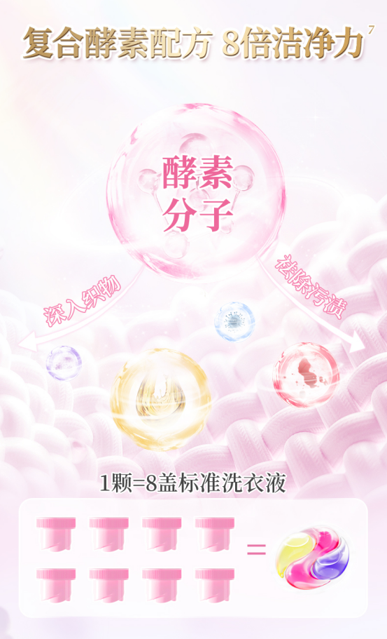 高浓缩配方,8倍洁净力 直接丢一粒到洗衣机里😍超方便~