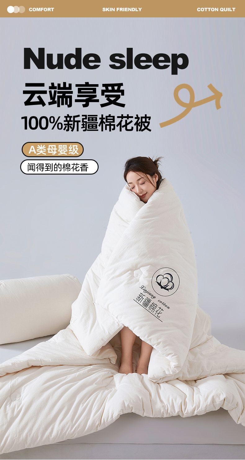 【品牌直发】加倍生活 A类水洗棉新疆棉花被 春秋被/冬被/加厚冬被 1.5m/2.0m/2.2m可选被芯
